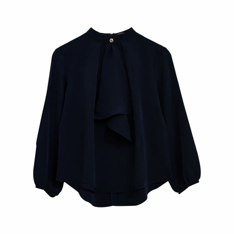 こちらのブラウスは、八分袖のタイプと共に私の定番で、色違い含め既に八枚目です。シルエットがキレイ(一枚で決まる、痩せてきた首元がカバーできる)お洗濯が楽(アイロン不要で乾きが早い)ゴールドボタンがアクセントになって金属アレルギーでもアクセサリー要らず、カラー展開も絶妙でとても気に入っています。仕事でもプライベートでも沢山着ています。ずっと残していただきたいアイテムです。