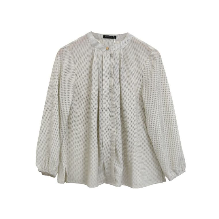 • スタンドカラーでフロントタックのシンプルなドット柄ブラウス。