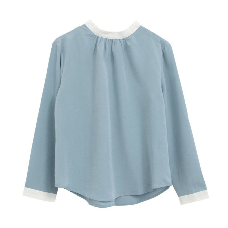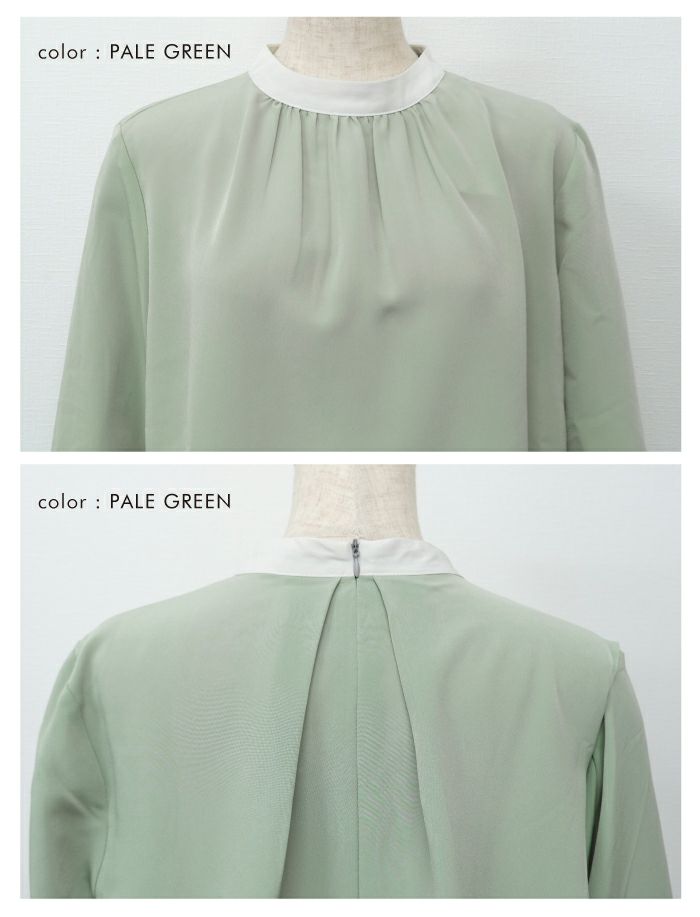 サラッとしたなめらかな肌触りのバイカラーギャザーブラウス。 首元のギャザーデザインが表情豊かなアクセントに。 深めのバックファスナーがついていて、着脱も楽なのが嬉しい。 デイリーからオフィスカジュアルまで着回し力も抜群です。