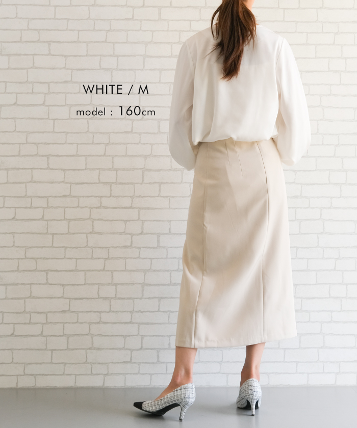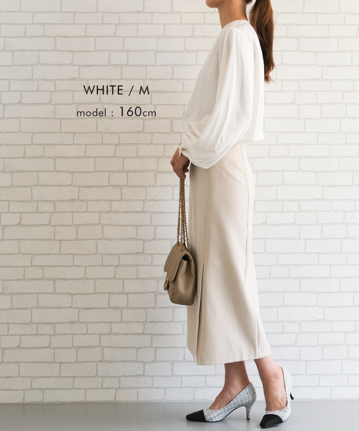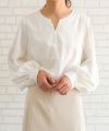 ネックレスいらずの華やかなデザイン♪キーネックパールボタンブラウス