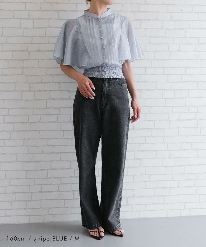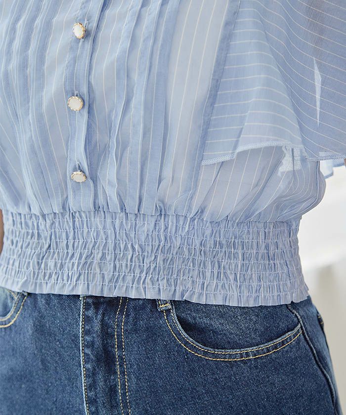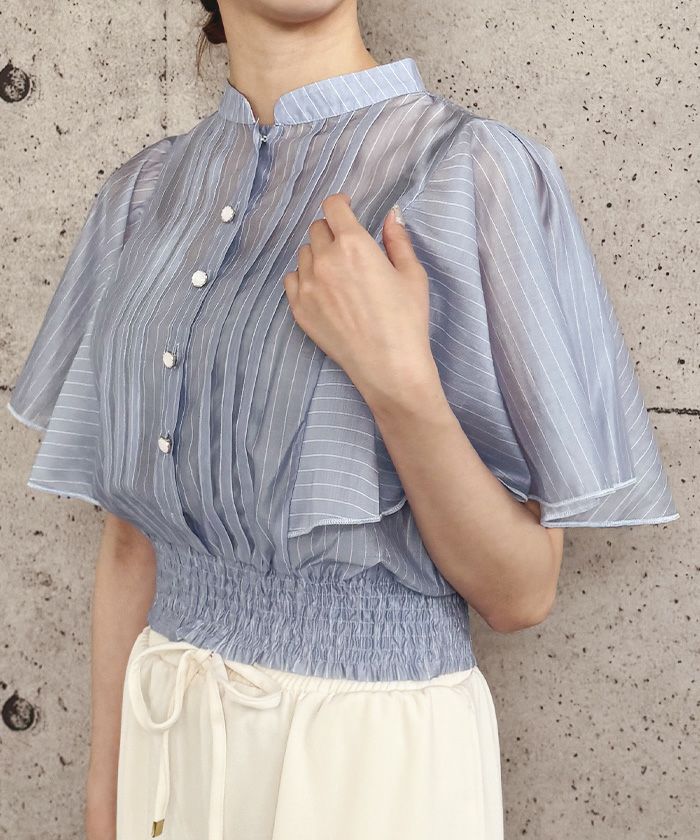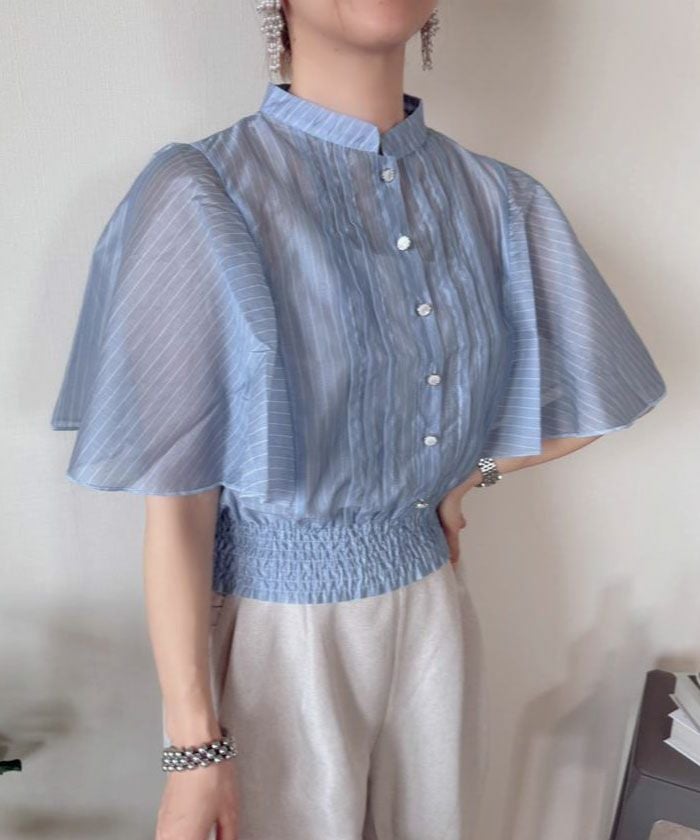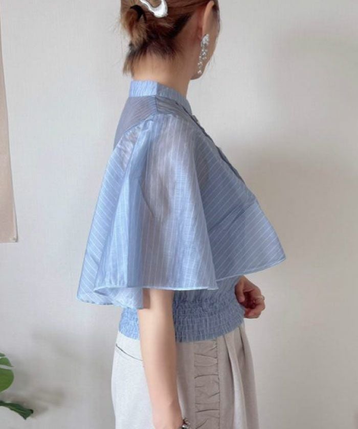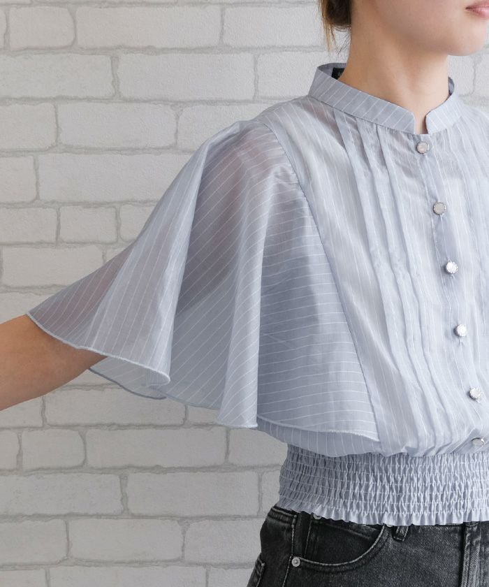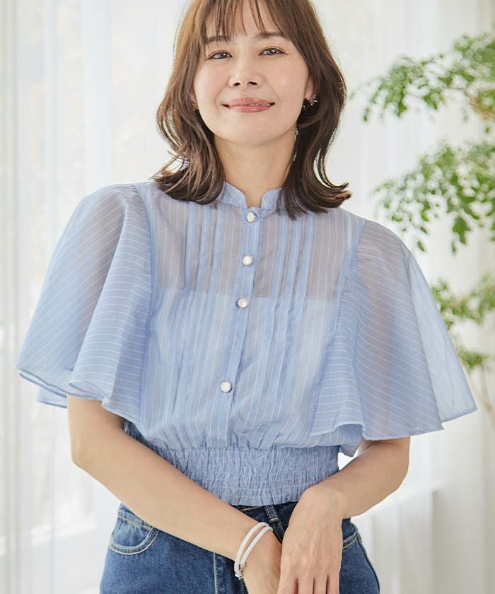 軽やかなシアー素材を使用しており、春から秋にかけての季節にぴったりの一枚です。