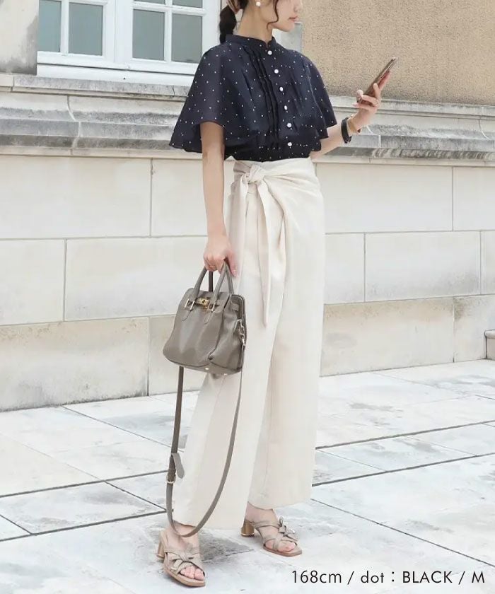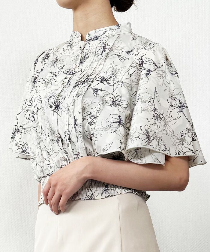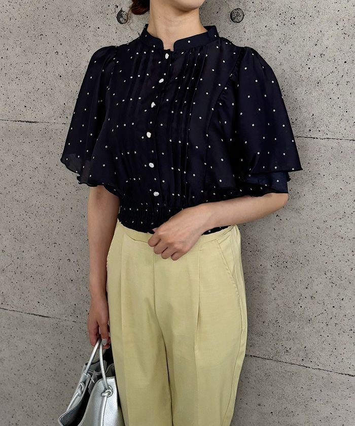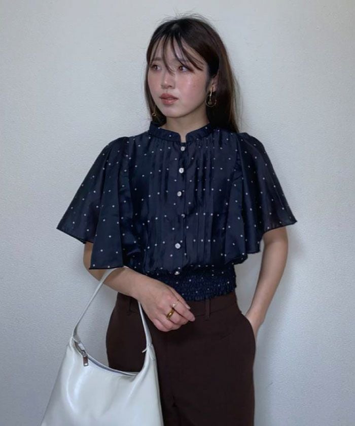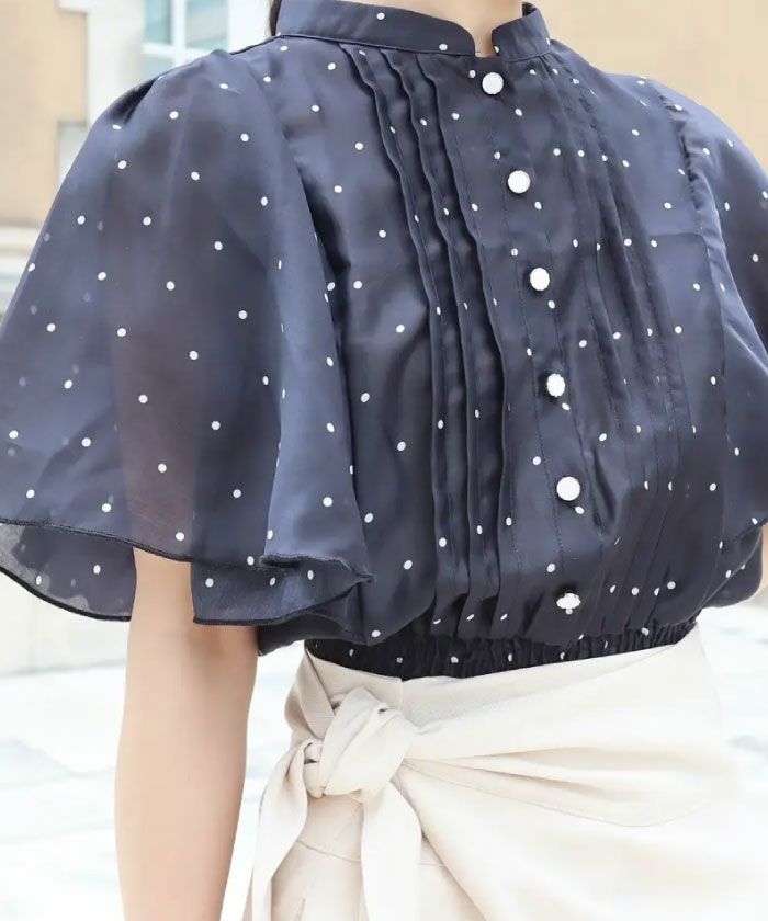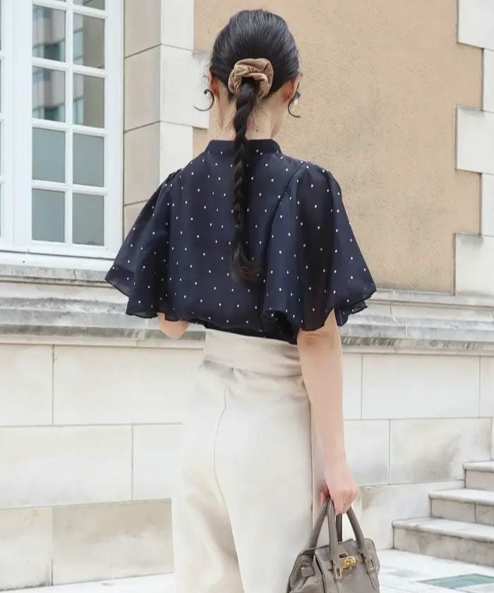 ふんわりと広がるフレアスリーブが、女性らしい柔らかな印象を与えます。
