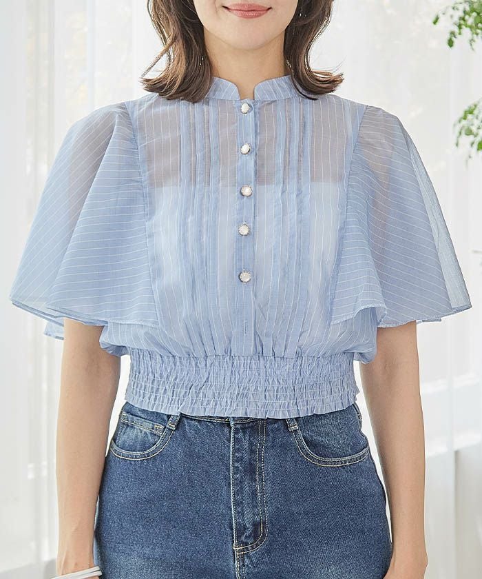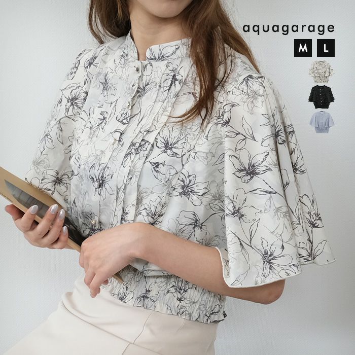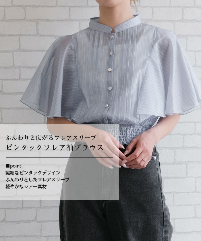 送料無料 ピンタックフレア袖ブラウス 春 夏 秋 ≪ゆうメール便配送20・代引不可≫ | アクアガレージ aquagarage