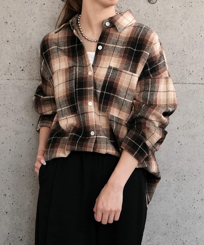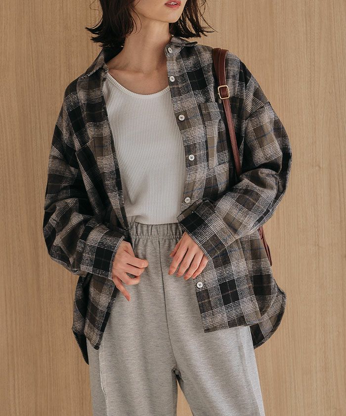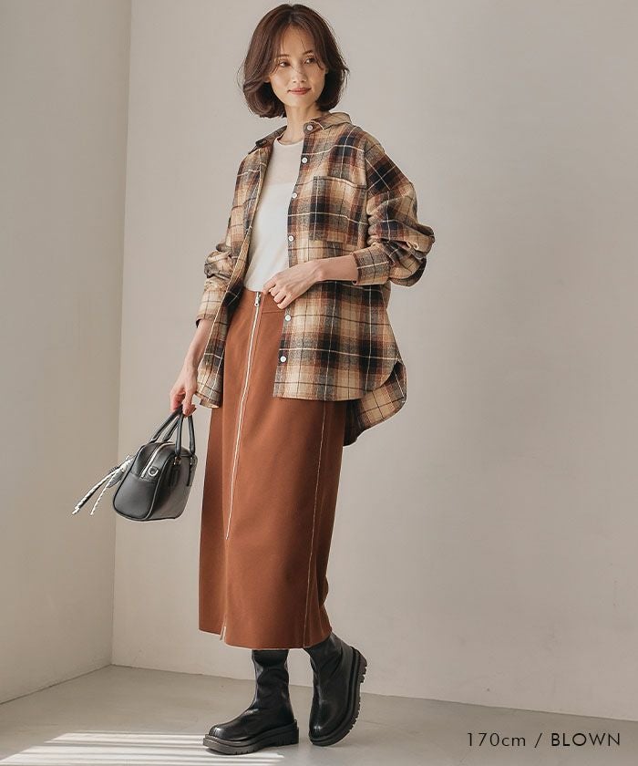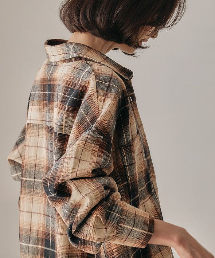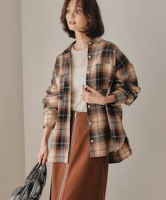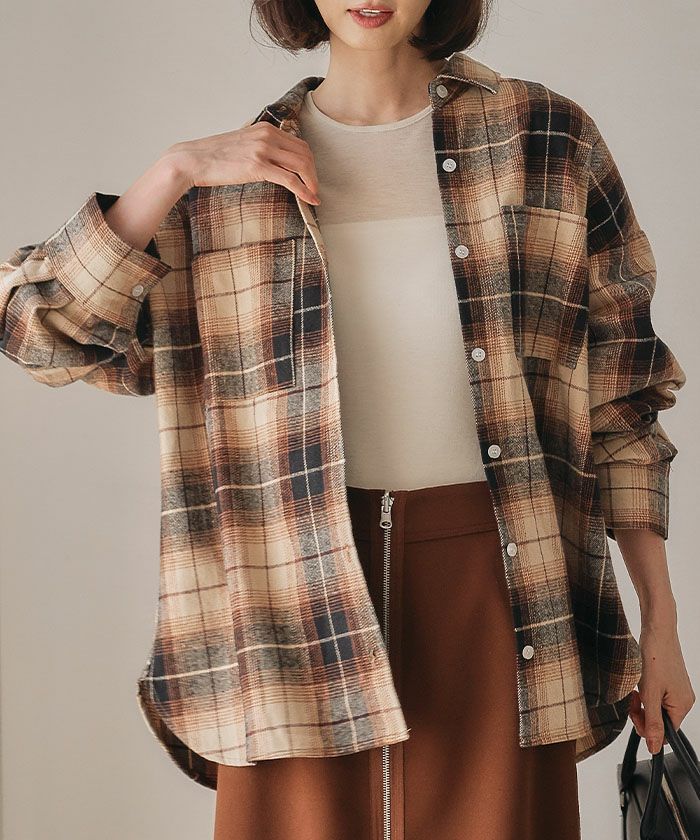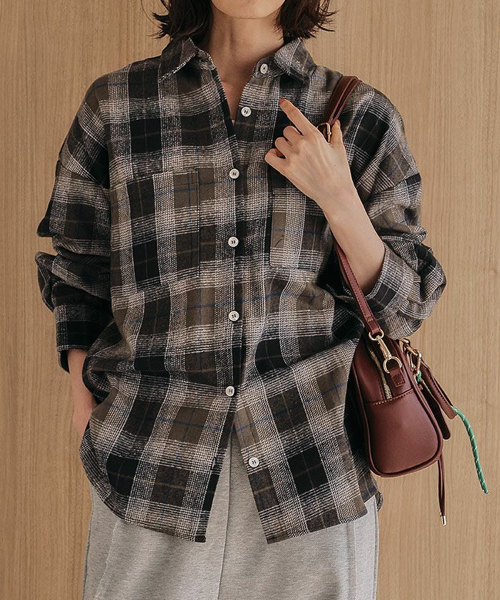 落ち着いた色合いのチェック柄は派手すぎず、大人っぽく着こなせるのもポイントです。