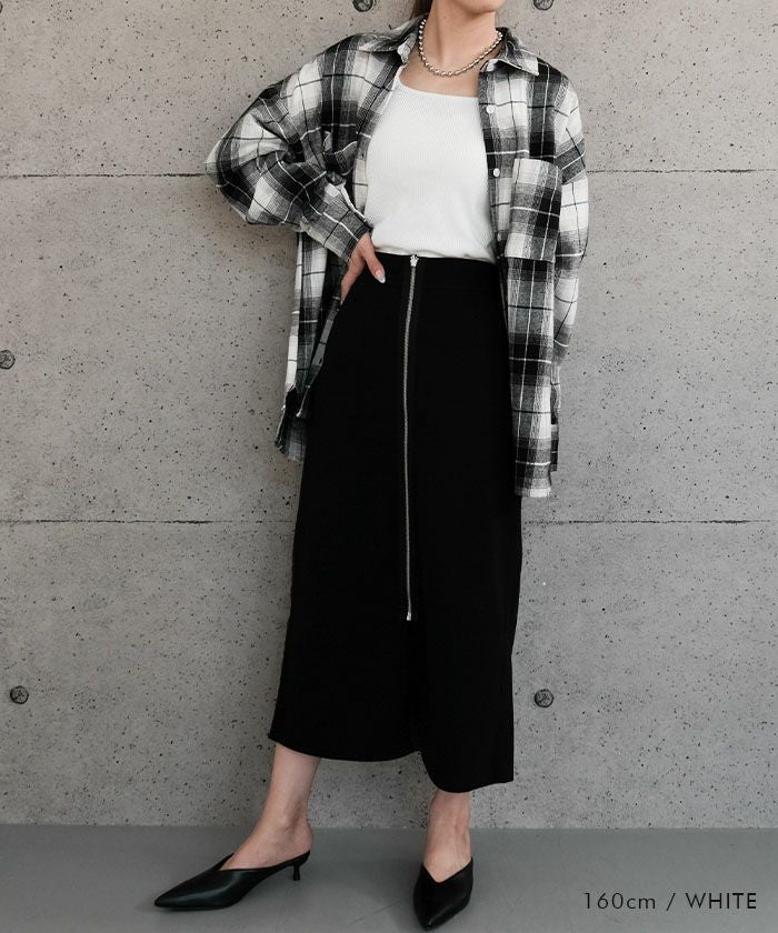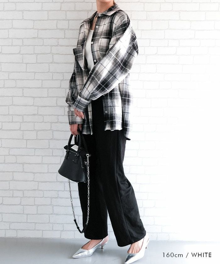 Tシャツやタートルネックなどシンプルなインナーと相性が良く、チェック柄が程よいアクセントに。