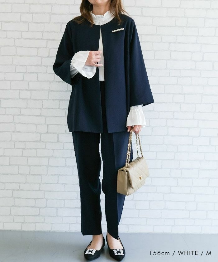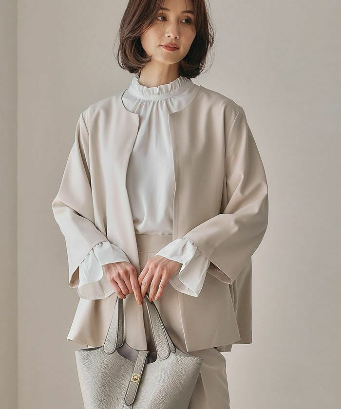 ジョーゼット素材なのでシワになりにくく、きちんと感がありながらお手入れも気軽にできるのが嬉しいポイントです。