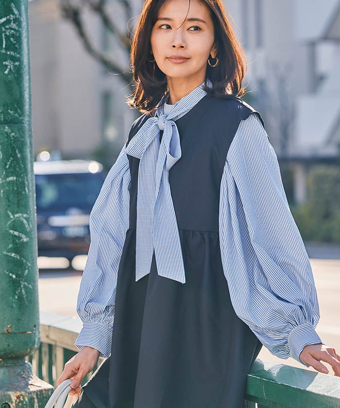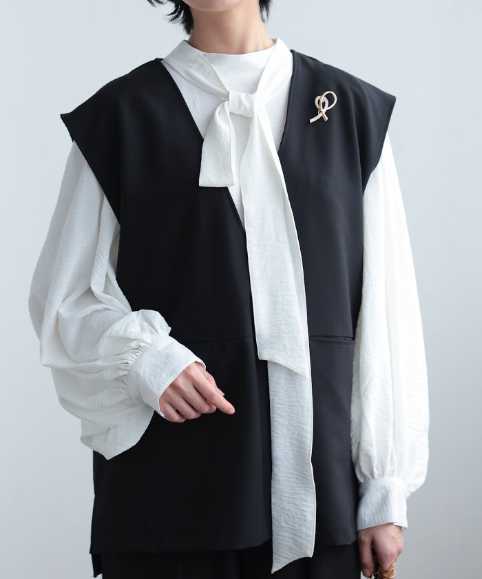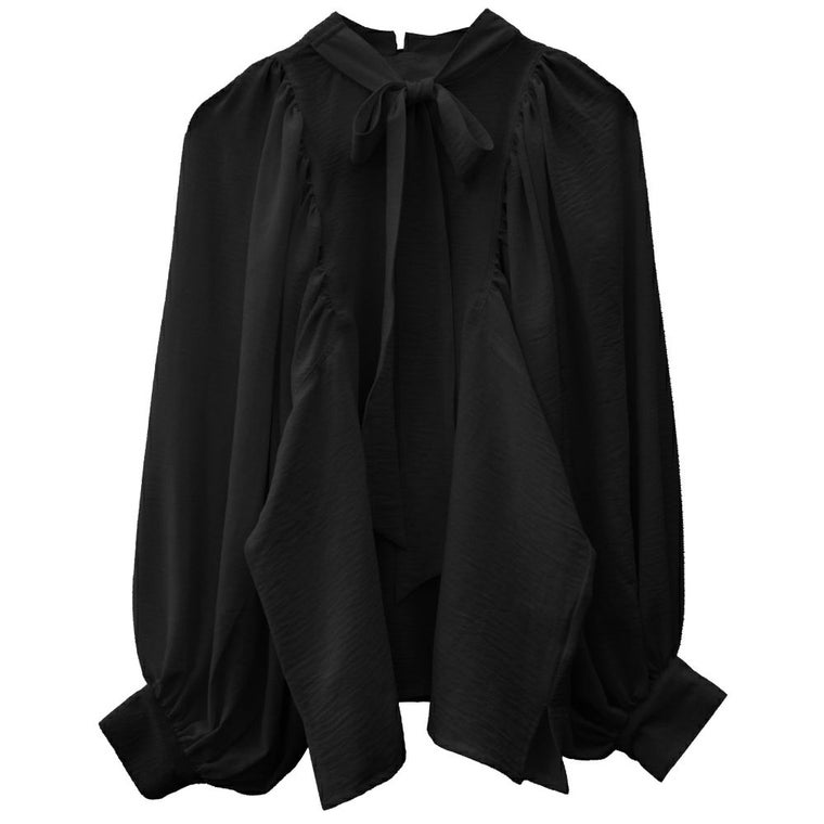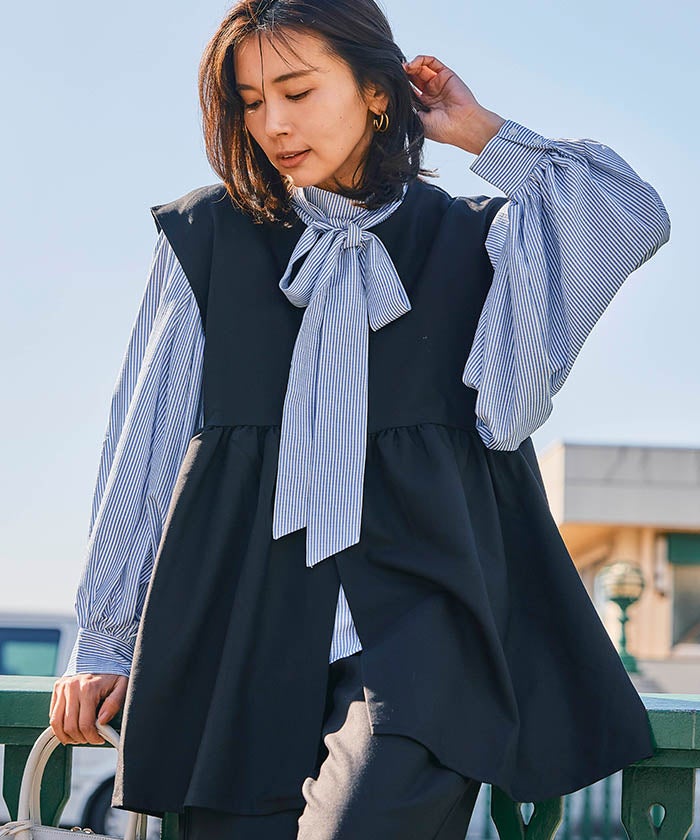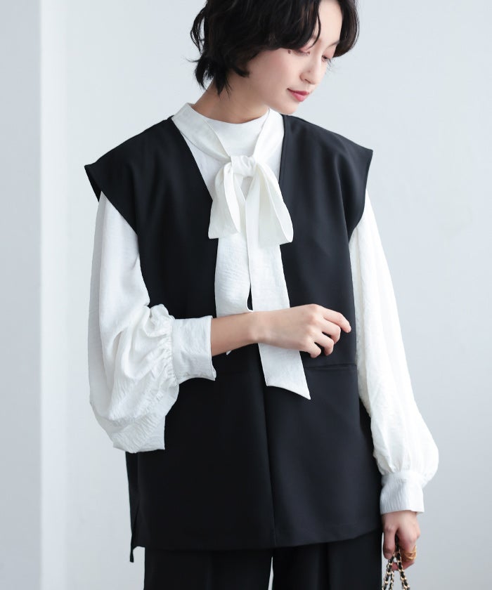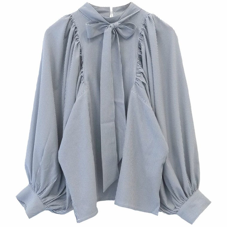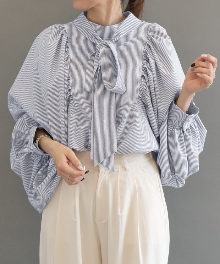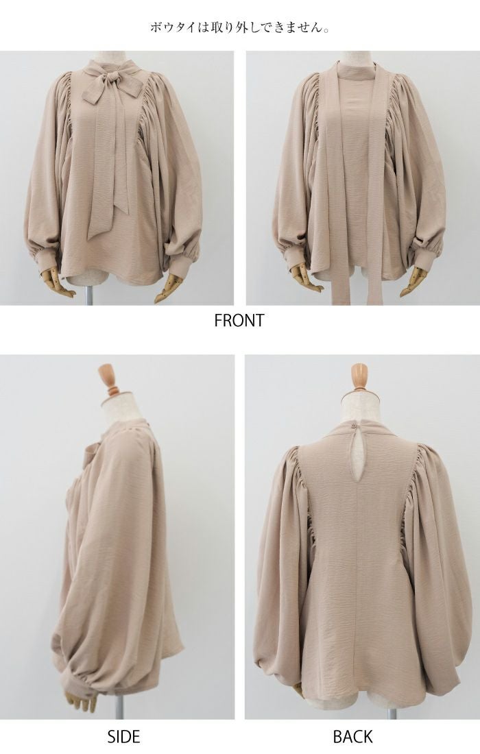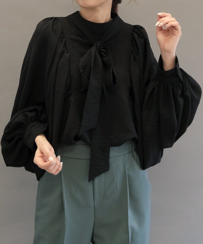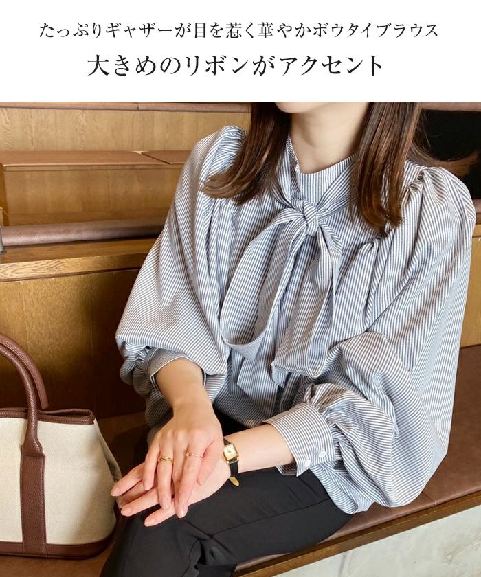 • 大きめのリボンがアクセント!たっぷりギャザーが目を惹く華やかボウタイブラウス