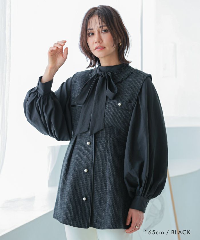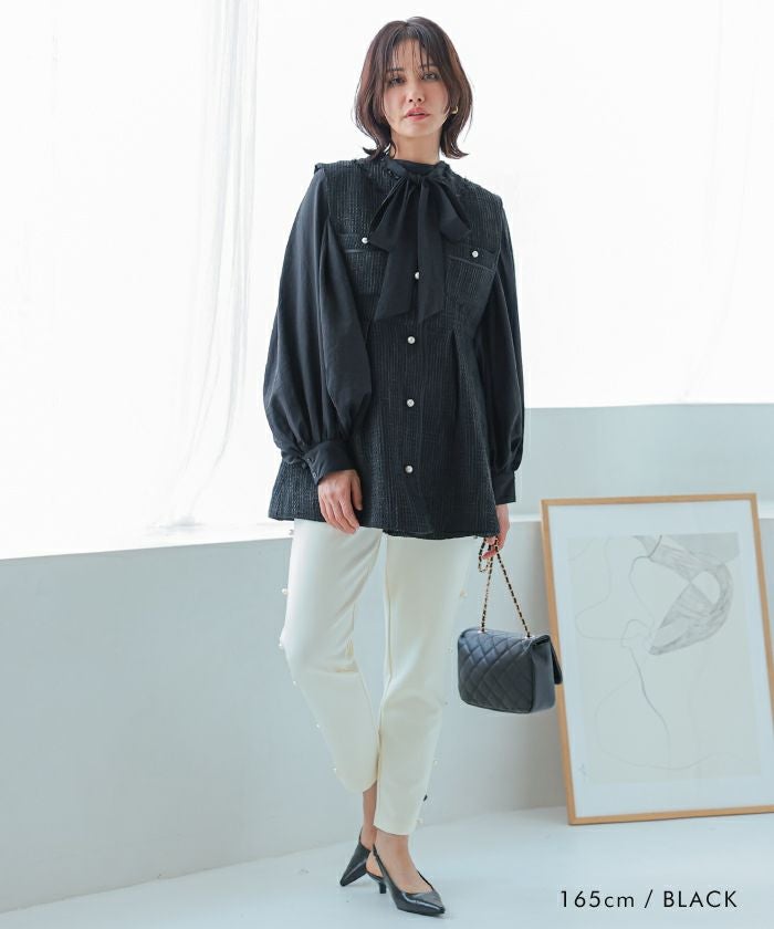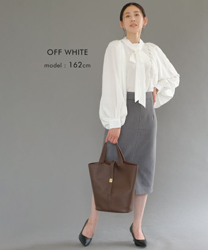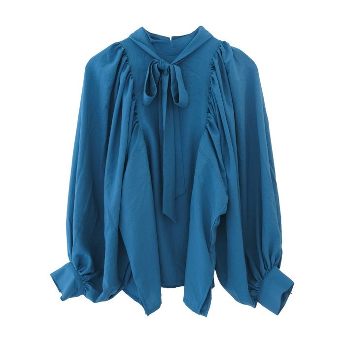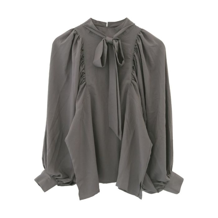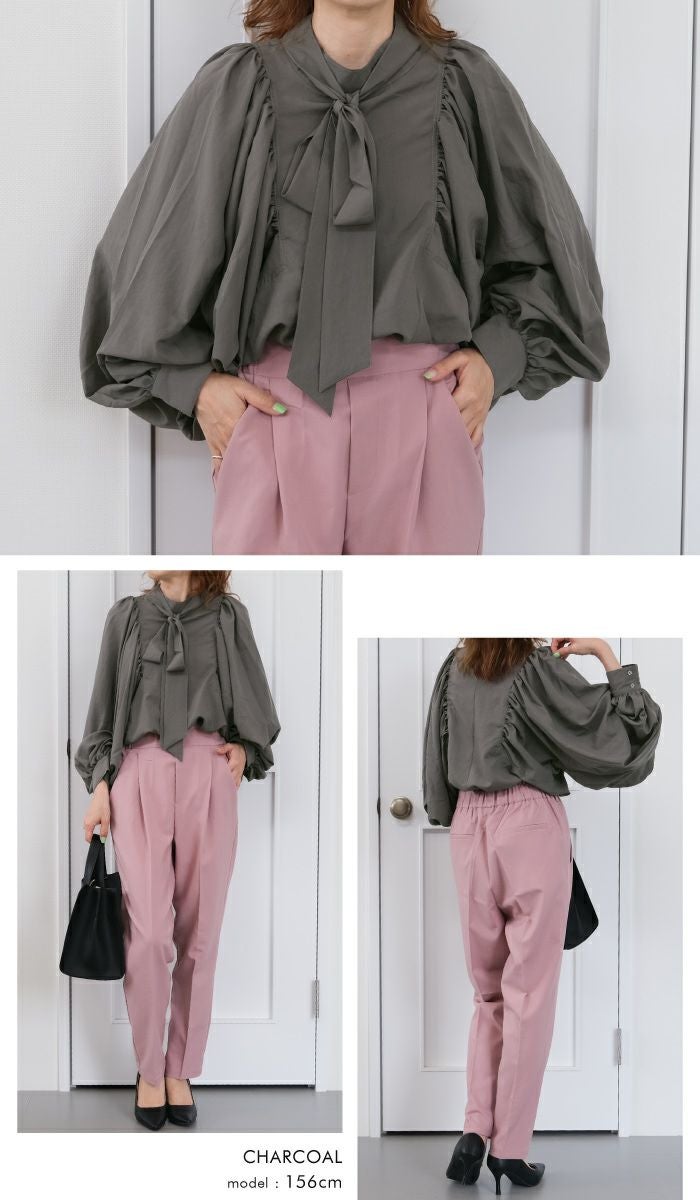 • 大きめのリボンがアクセント!たっぷりギャザーが目を惹く華やかボウタイブラウス