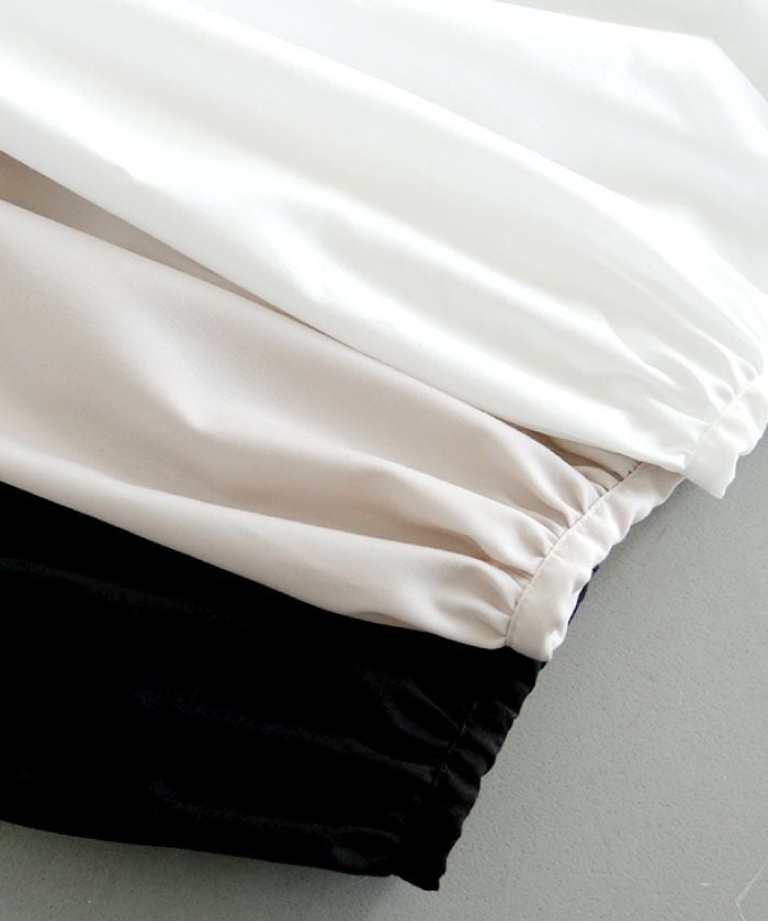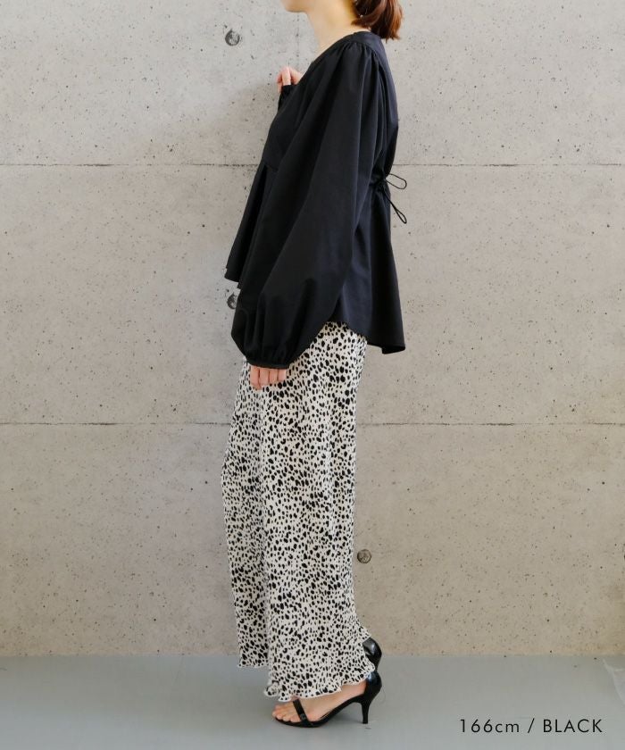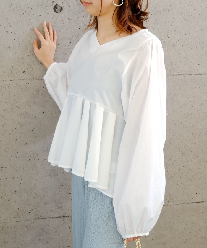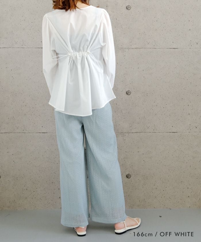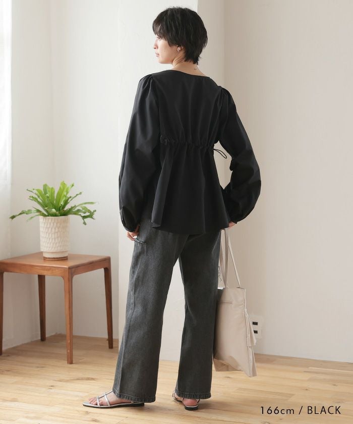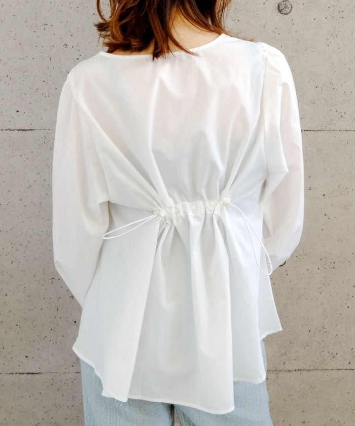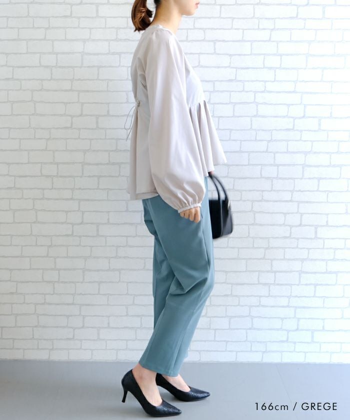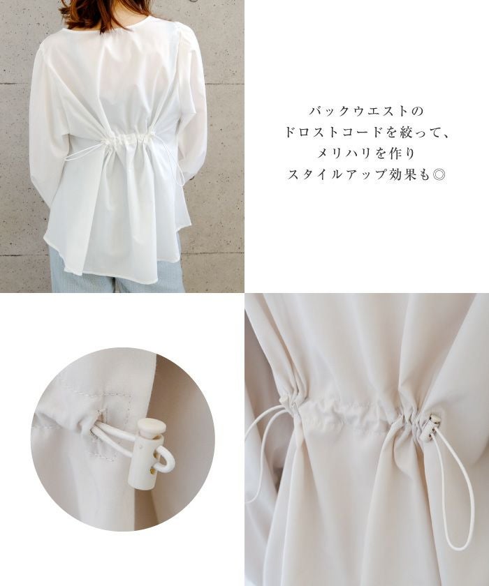 • ウエストシェイプの袖ボリュームバック絞りチュニックブラウス