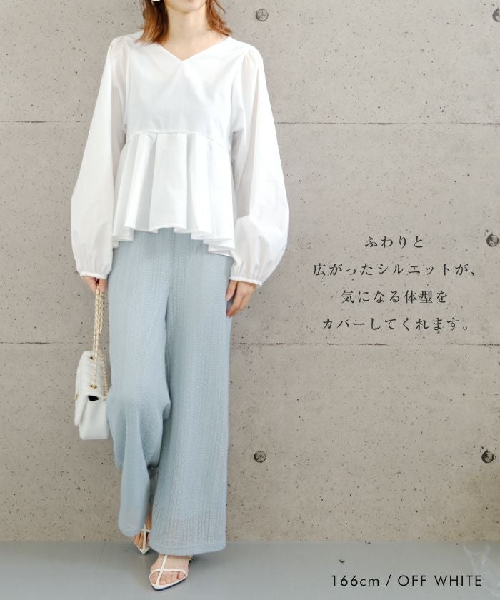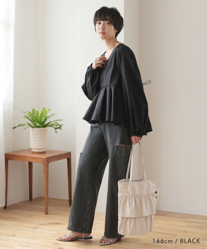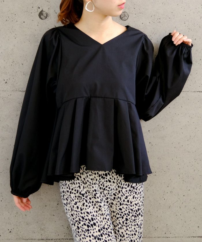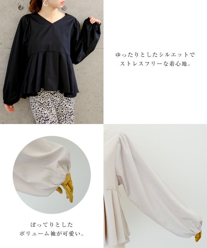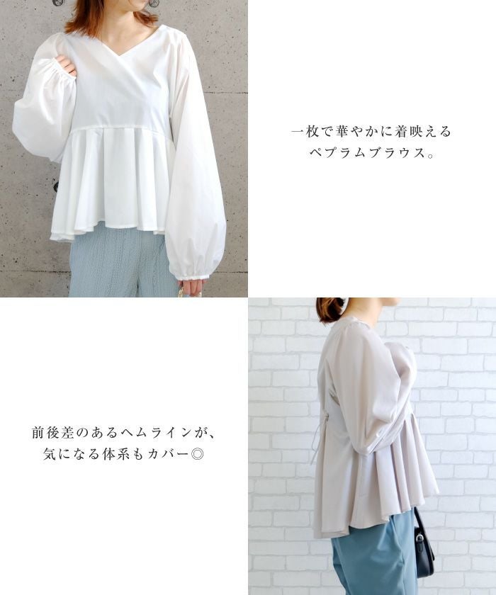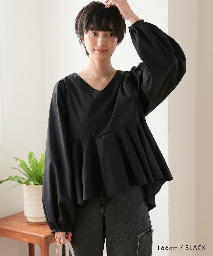 送料無料 袖ボリュームペプラムブラウス レディース 春 秋 冬 |≪ゆうメール便配送20・代引不可≫ アクアガレージ aquagarage