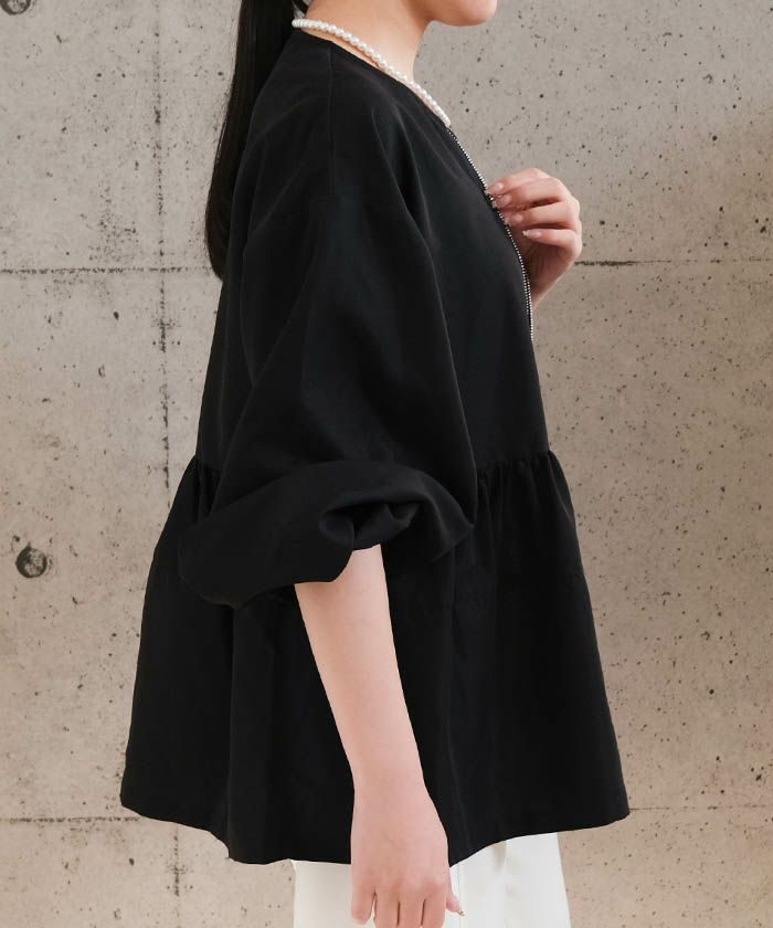 • 軽くてハリがある素材でサラっと羽織りとしても使えるペプラムジップブラウス