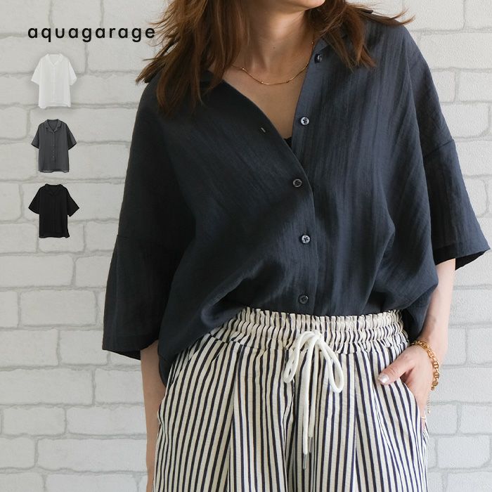 送料無料 シアー半袖開襟シャツ レディース 春 秋 冬 ≪ゆうメール便配送20・代引不可≫| アクアガレージ aquagarage