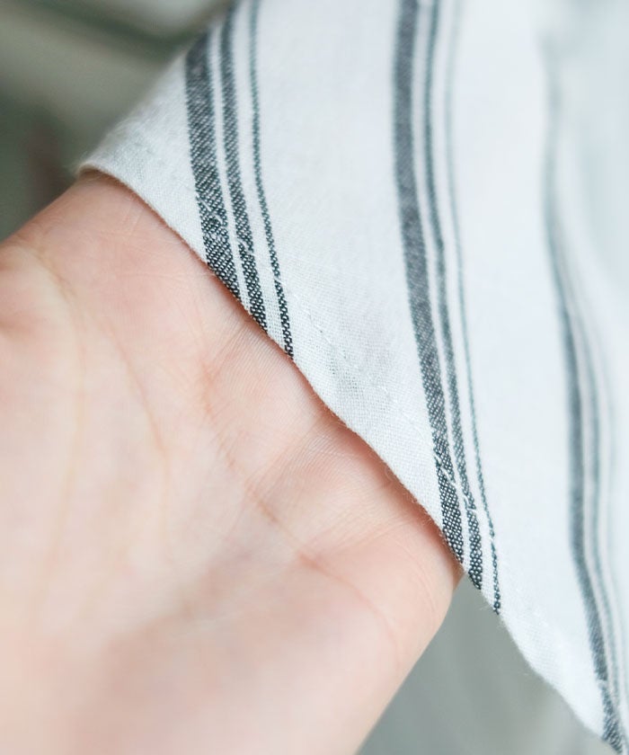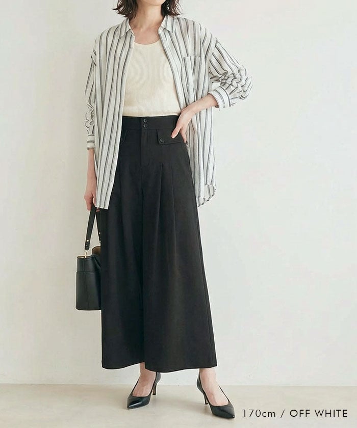主張しすぎない細めのストライプが、全体をすっきりと見せながらも上品な印象を与えてくれます。