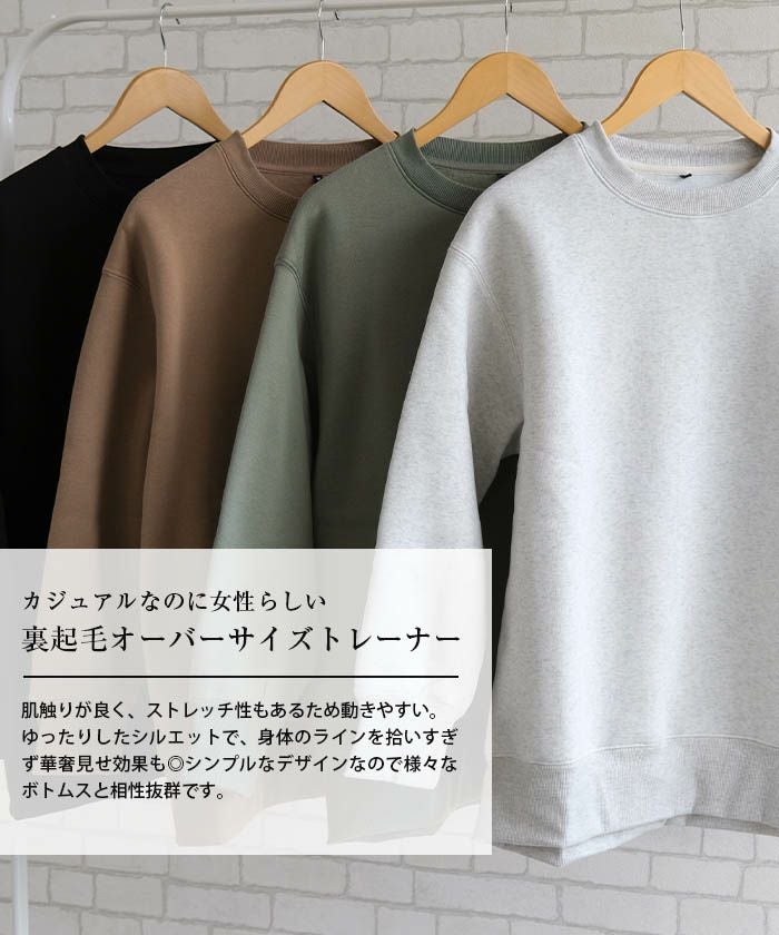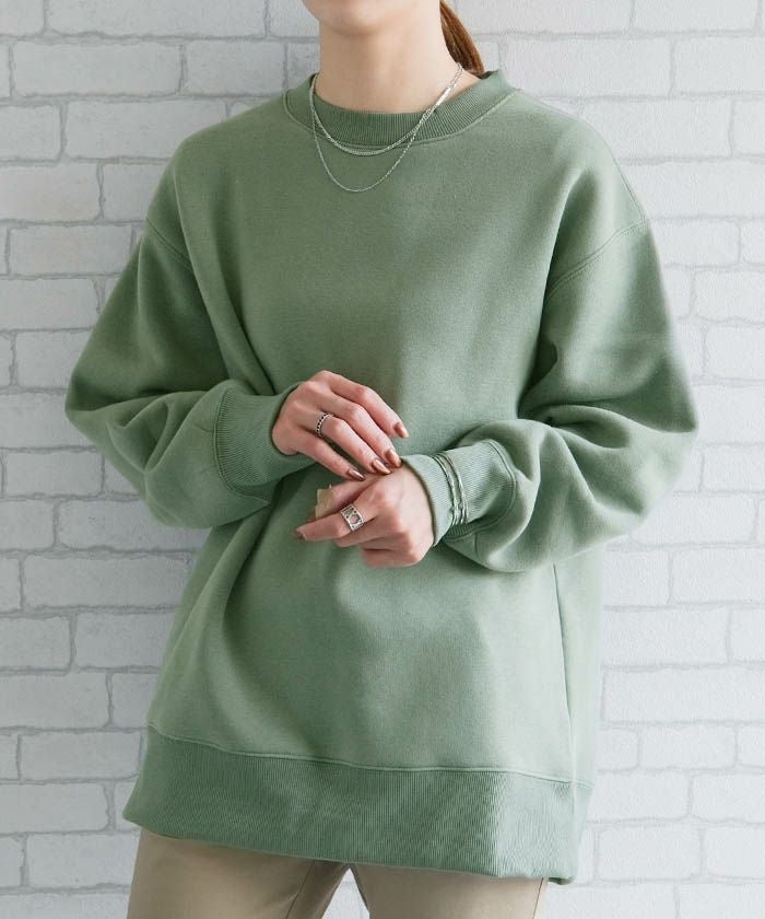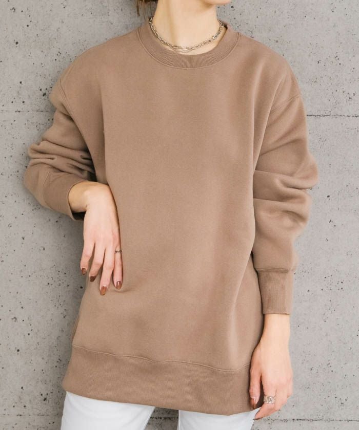 • カジュアルなのに女性らしい、ヘビーウエイト裏起毛オーバーサイズクルーネックトレーナー