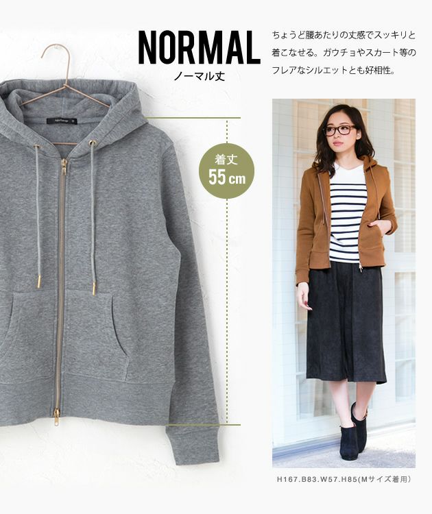 ノーマル丈Lサイズ、ライトグレー購入しました。 身長156cm、普段Mサイズです。 きちんと暖かさがありますが、生地が薄めなのでLサイズでもスッキリ着れました。 でもフードには厚みがあるのでしっかり立ちます。 ジッパーの上げ下げでひっかかる所があるのと、これから何度か着てからの毛玉の出来具合が気になりますが、可愛いパーカーだと思います!
