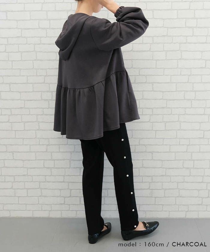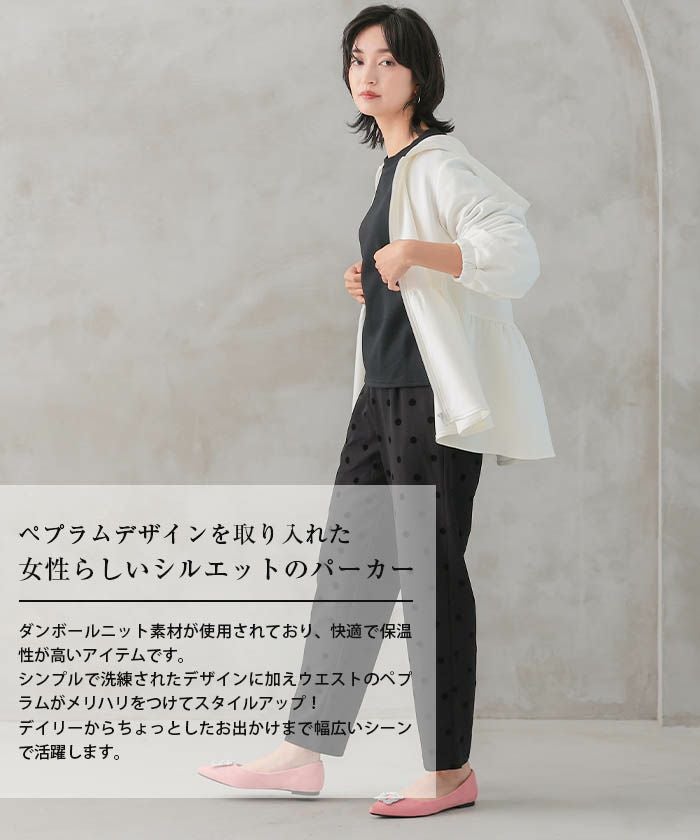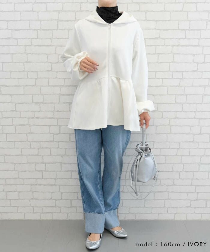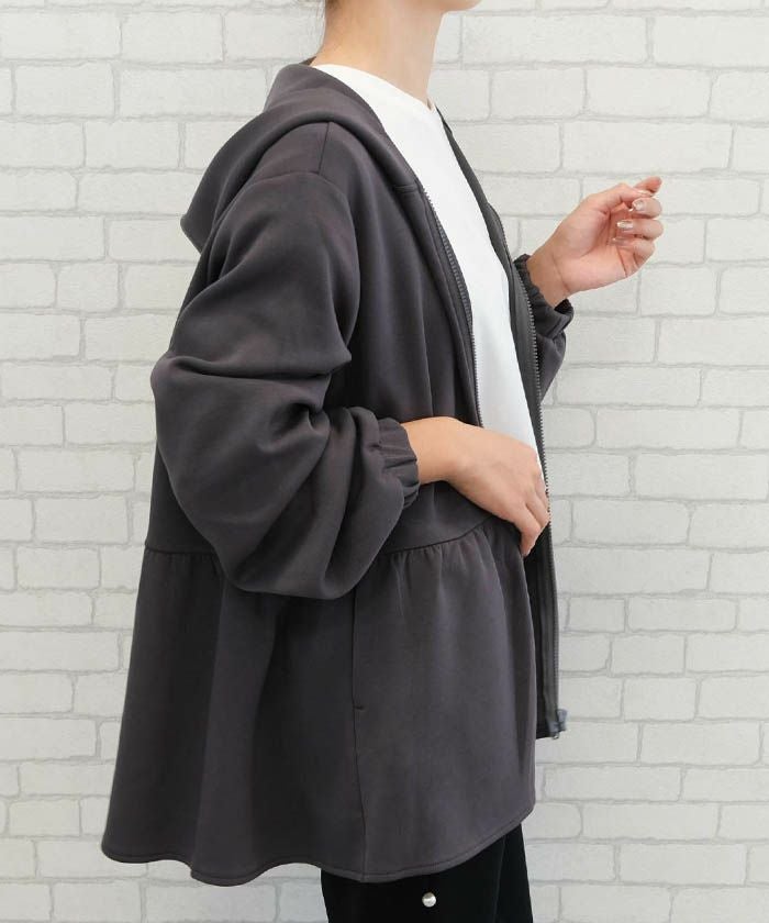• ペプラムデザインを取り入れた女性らしいシルエットのパーカー♪