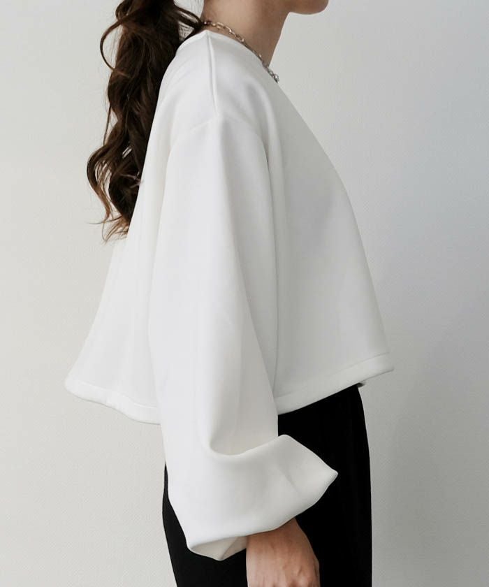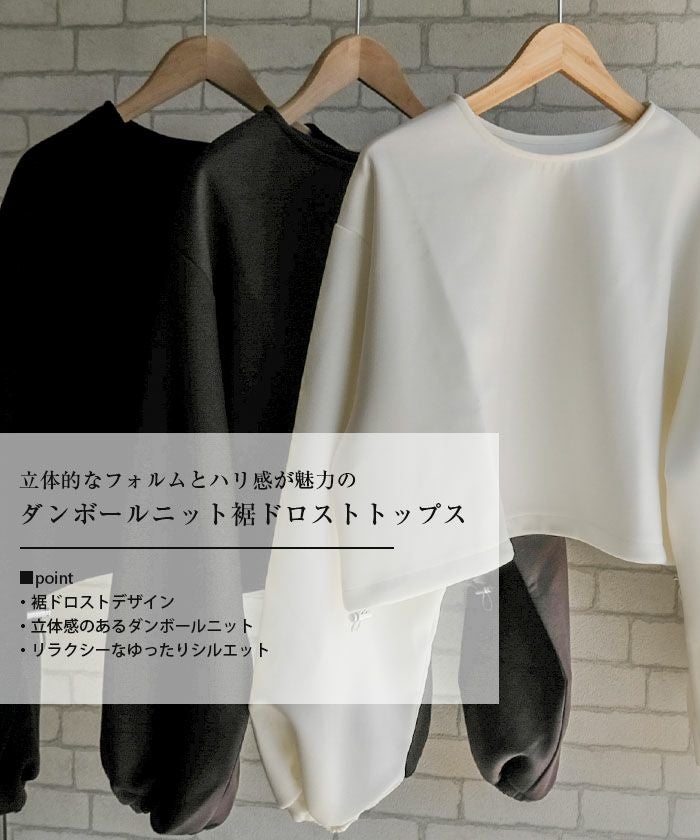 立体的なフォルムとハリ感が魅力の「ダンボールニット裾ドロストトップス」。
