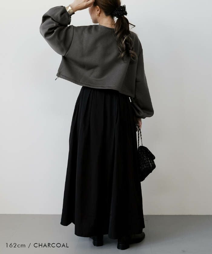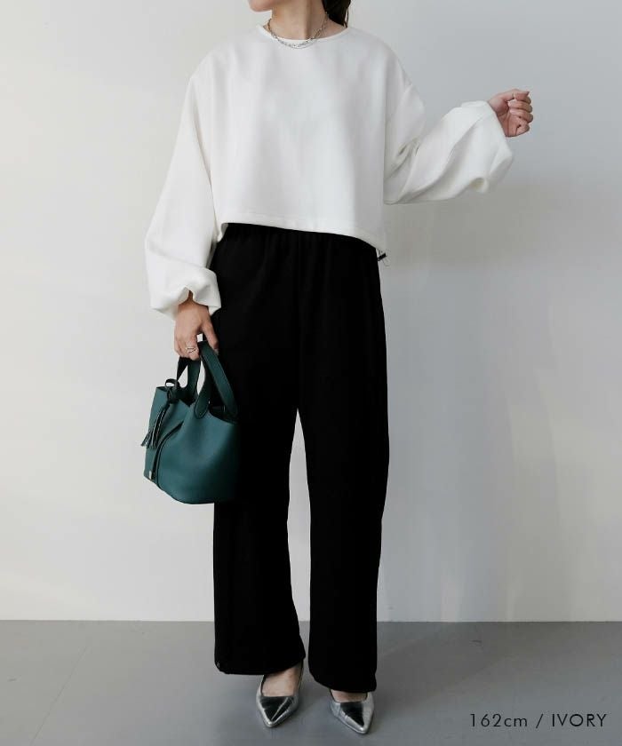 裾にはドロストコードを施しており、絞ることでふんわりとしたシルエットに変化。
