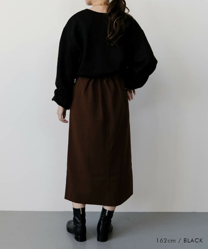 裾をゆるめてストレートに着ると、ワイドパンツやスカートとも好相性。