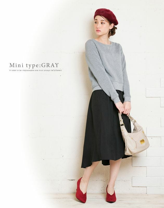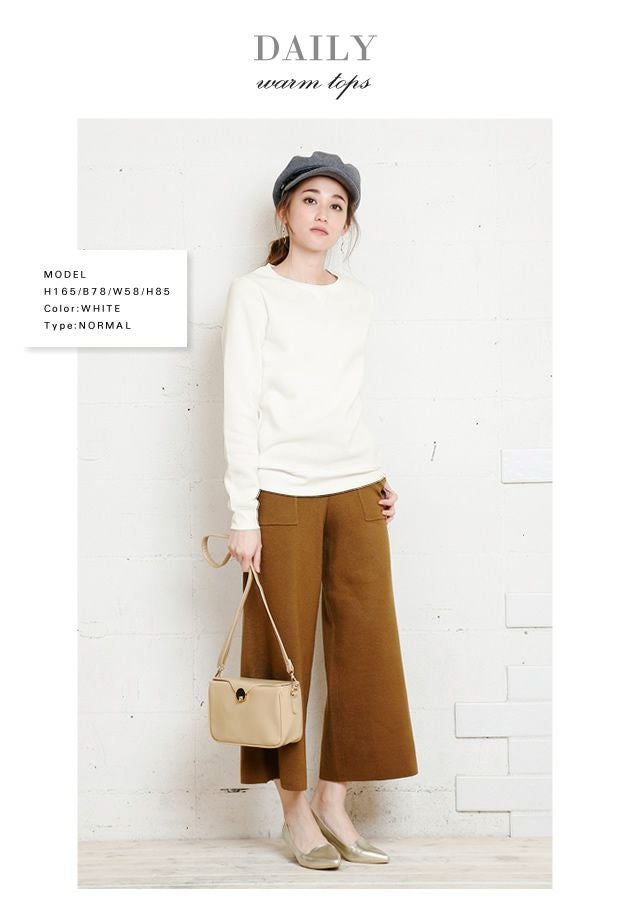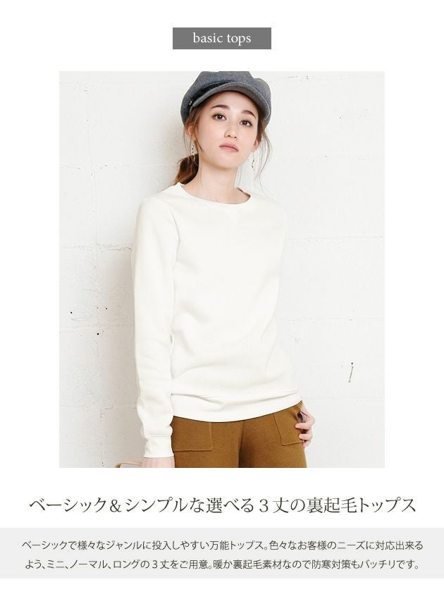 あったか トップス スエット 無地 体型カバー シンプル ベーシック カジュアル マニッシュ スポーティー ショート丈 大きいサイズ M L LL■