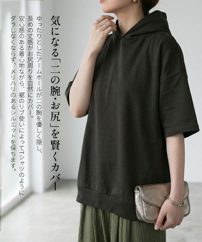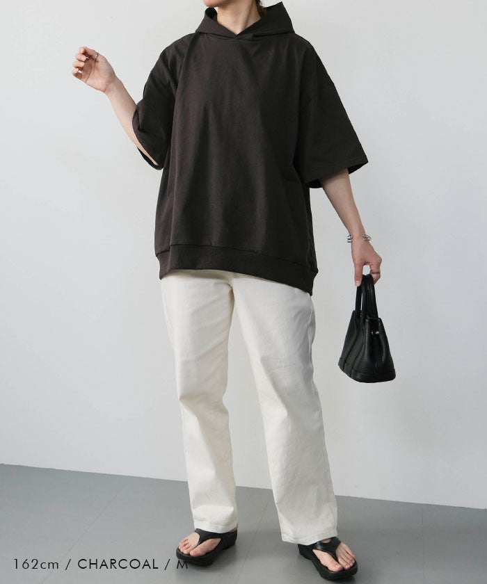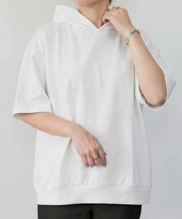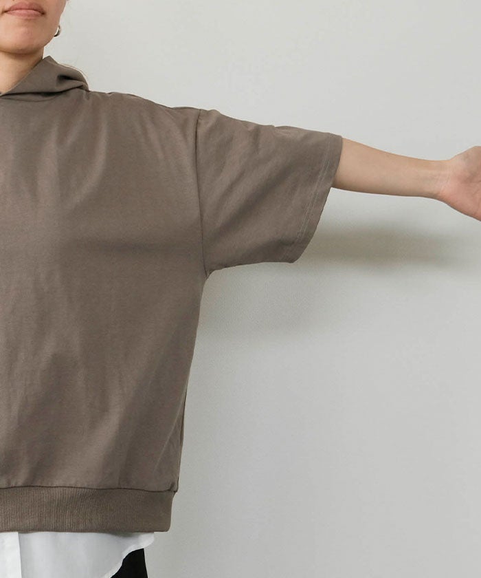 カジュアルな印象のパーカーを、半袖デザインで軽やかに仕上げた一着。