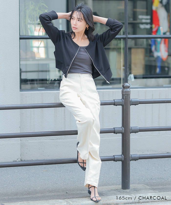 伸縮性もありさらっとした風合いで、ヨガウェアとしても着用できる快適な着心地です。