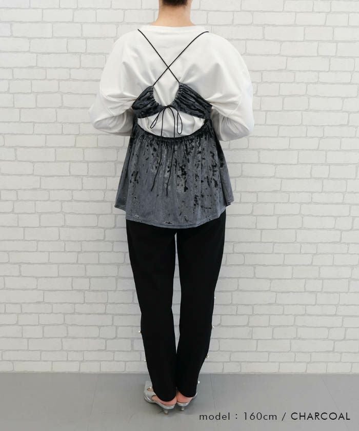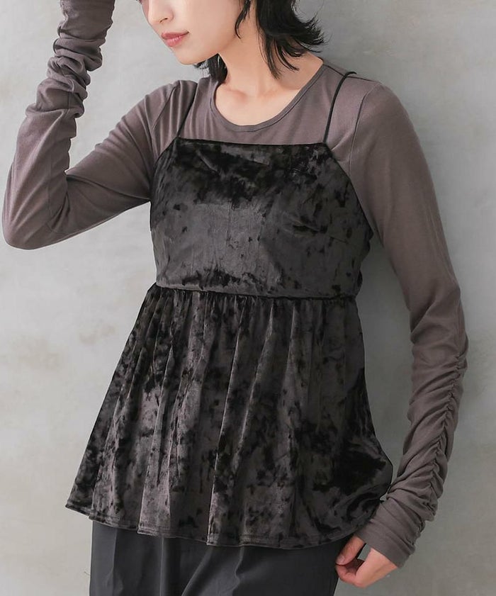 • 簡単レイヤードでスタイル美人に!ベロアペプラムビスチェ