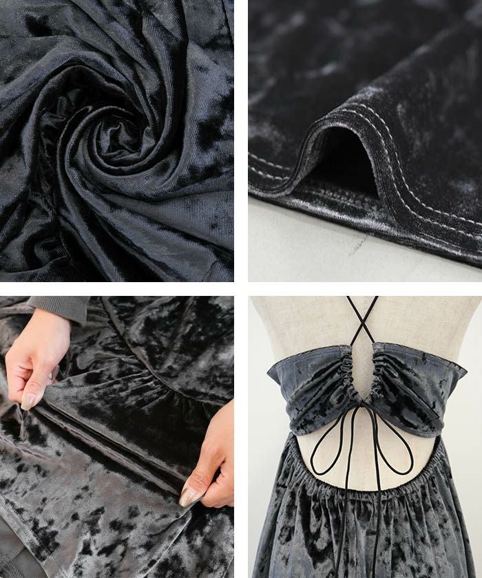 上品なベロア素材がシーズン感を演出し、ペプラムのシルエットが女性らしいラインを際立たせます。
