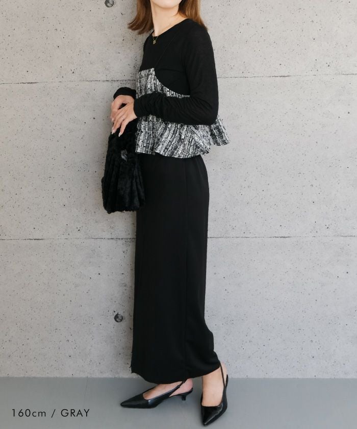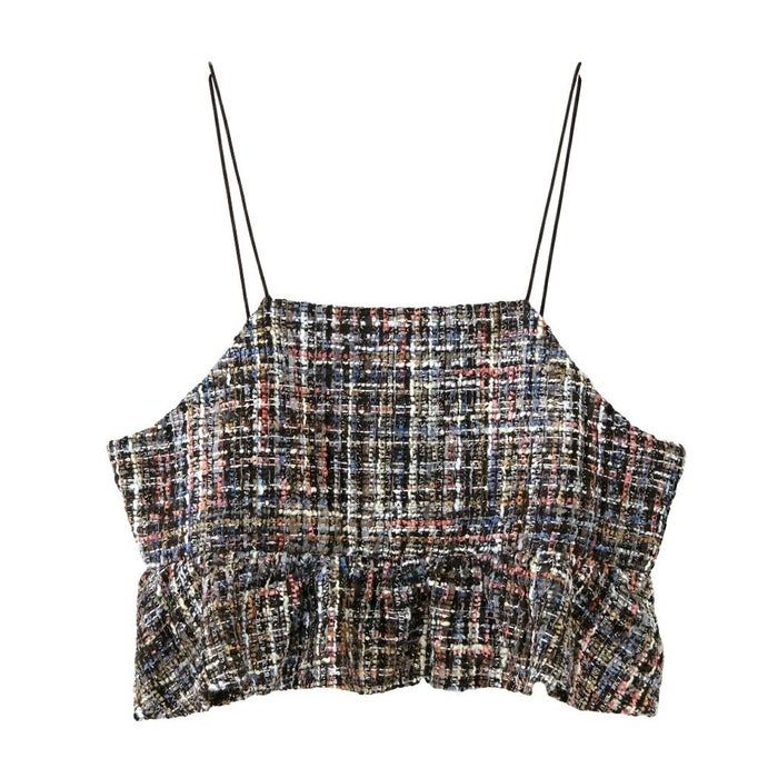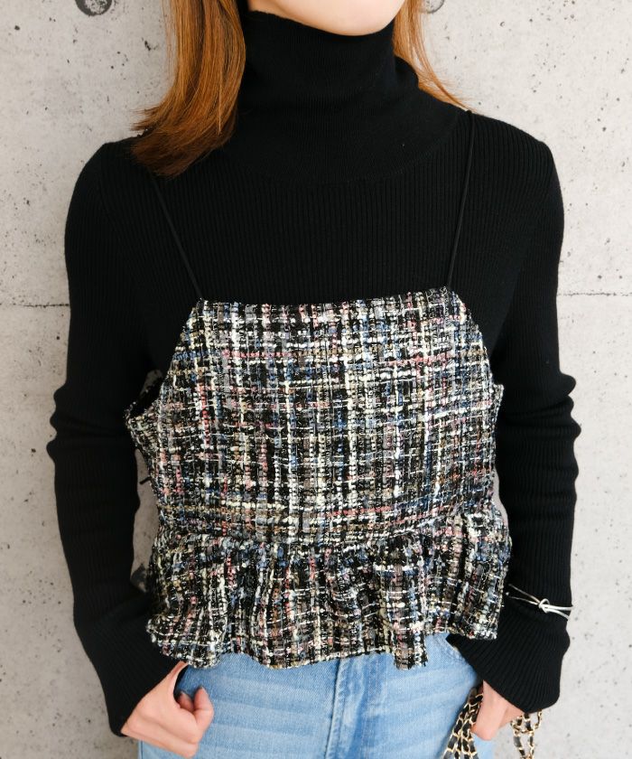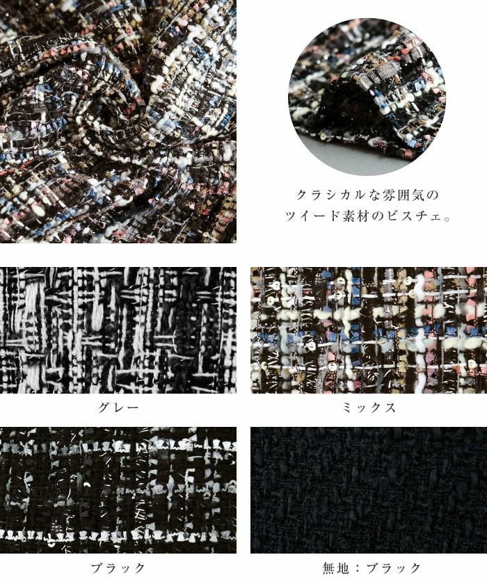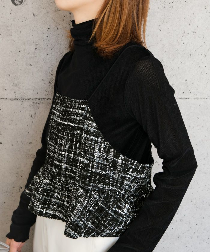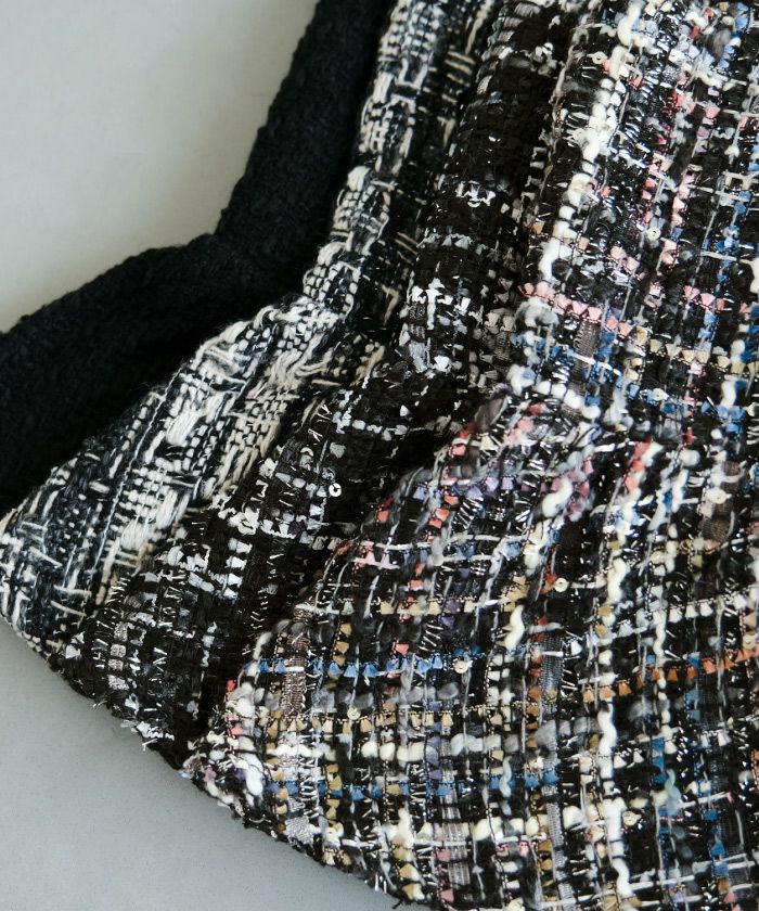 • スパンコールとラメ糸を織り込んだツイード素材のビスチェ