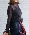 リボン柄プリントの総柄が目を惹く、シアートップス