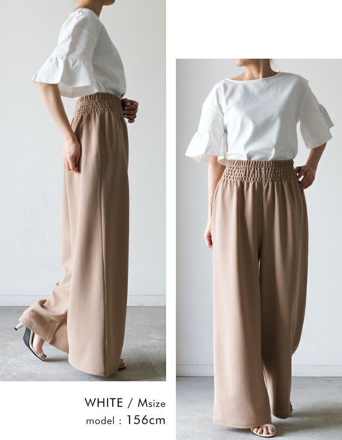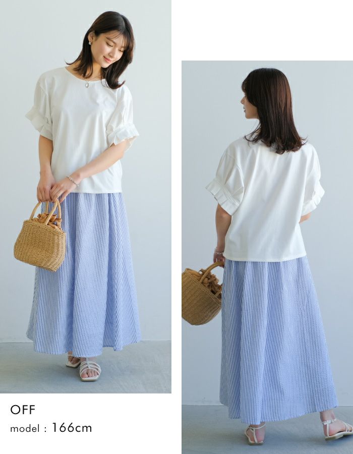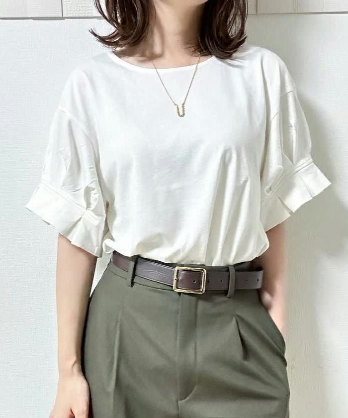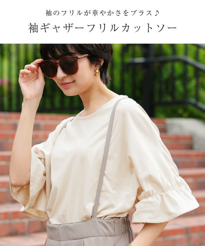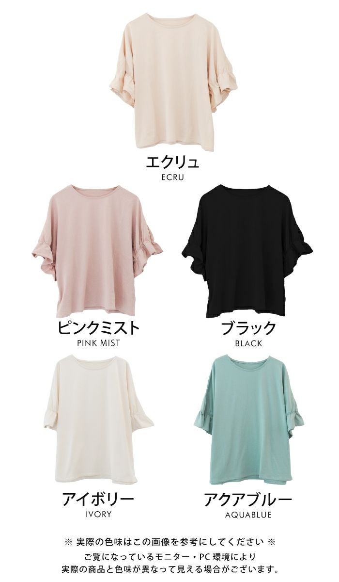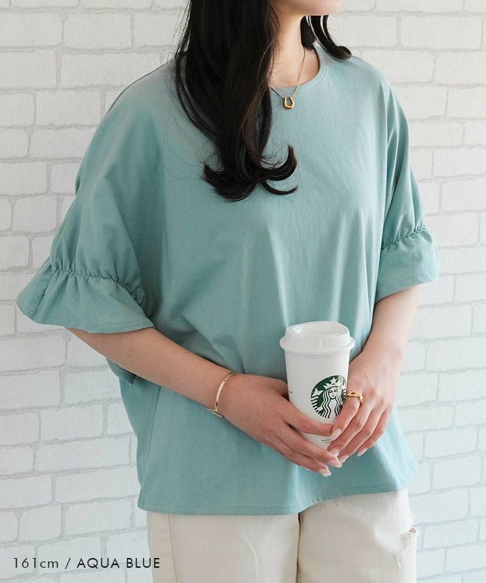 送料無料 ギャザーフリル袖カットソー レディース 春 夏 M ≪ゆうメール便配送20・代引不可≫ | アクアガレージ aquagarage