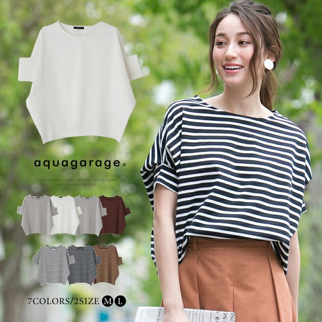 送料無料 ボートネックボックスTシャツ 春 夏 秋 M L レディース ≪ゆうメール便配送20・代引不可≫ | | アクアガレージ aquagarage