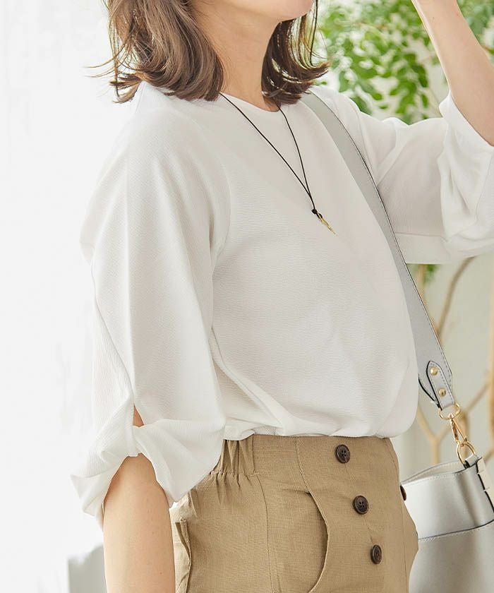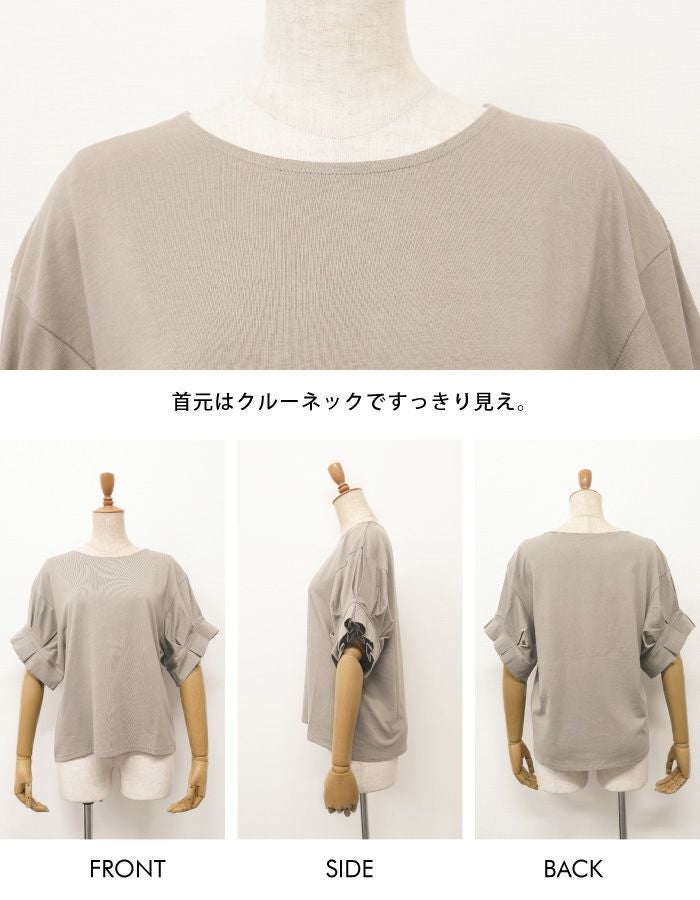 送料無料 袖プリーツカットソー レディース 春 夏 五分袖 半袖 ≪ゆうメール便配送20・代引不可≫ | アクアガレージ aquagarage