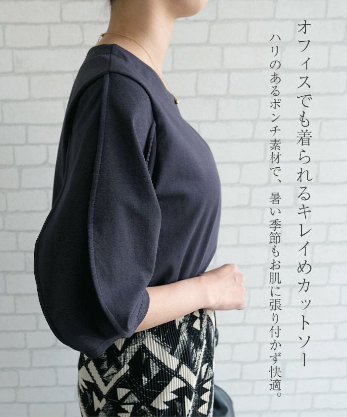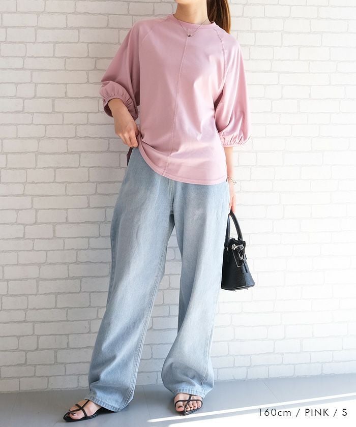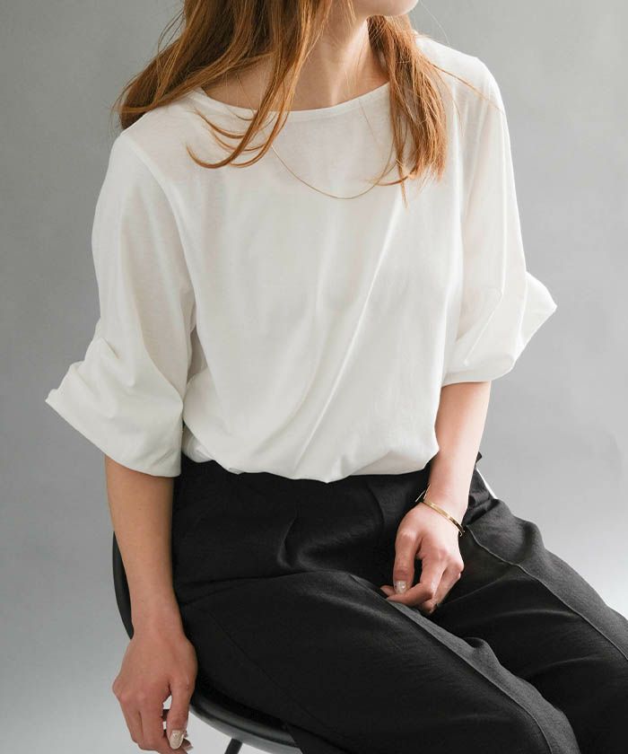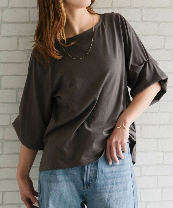 送料無料 ボリューム袖カットソー レディース 春 夏 五分袖 半袖 ≪ゆうメール便配送20・代引不可≫ | アクアガレージ aquagarage