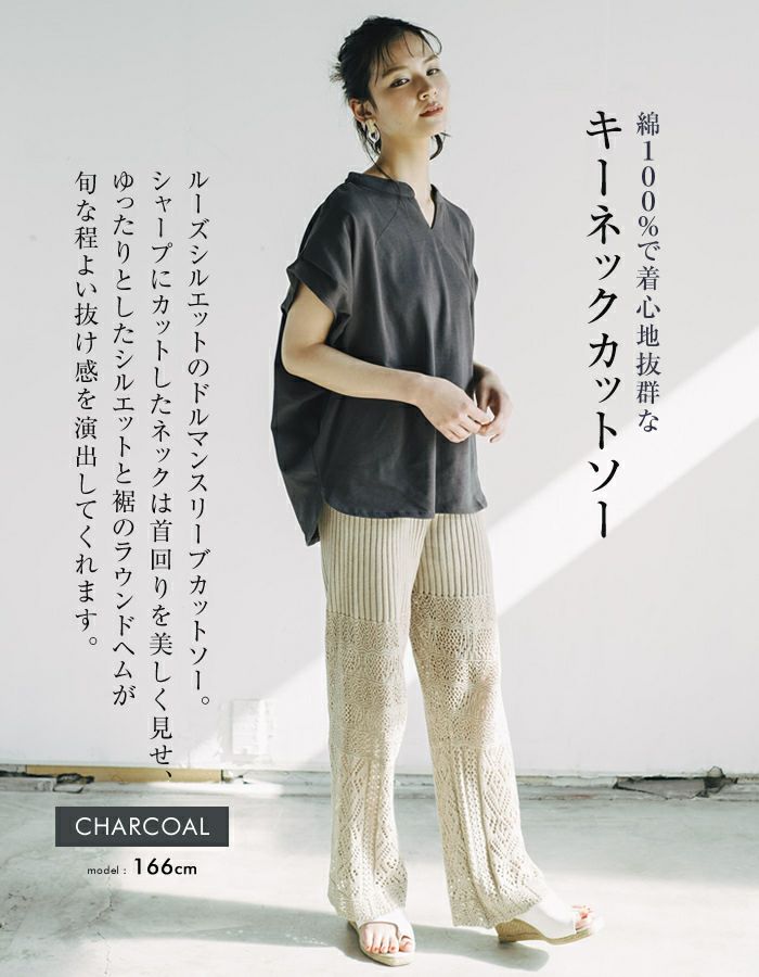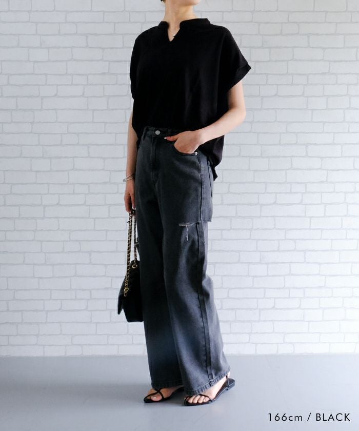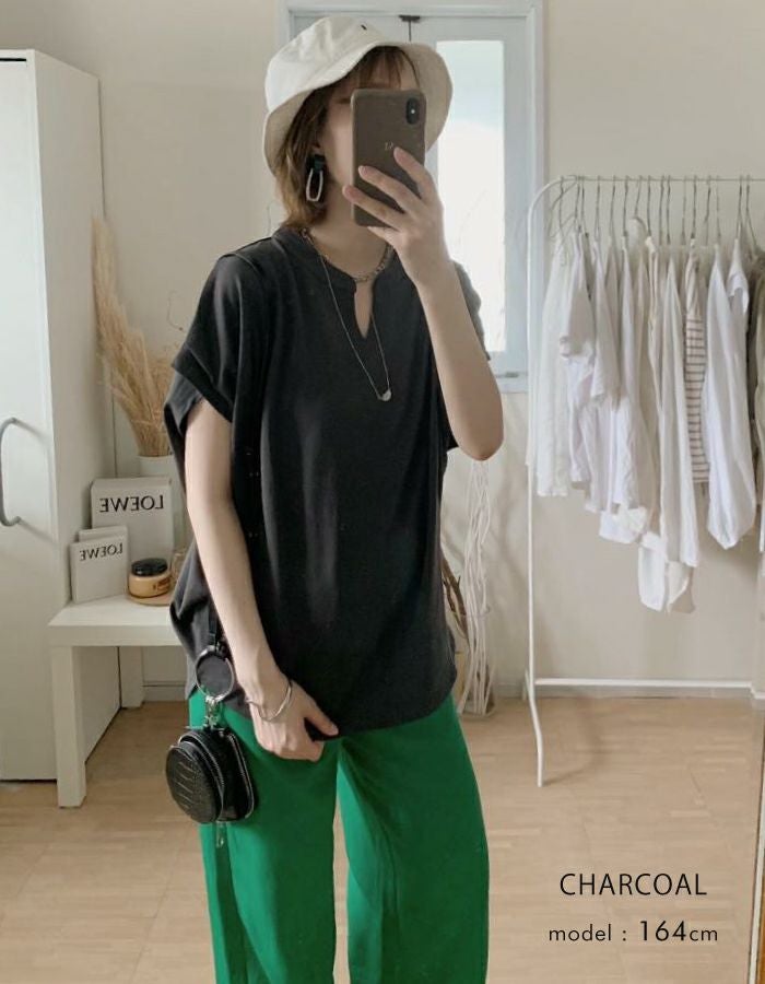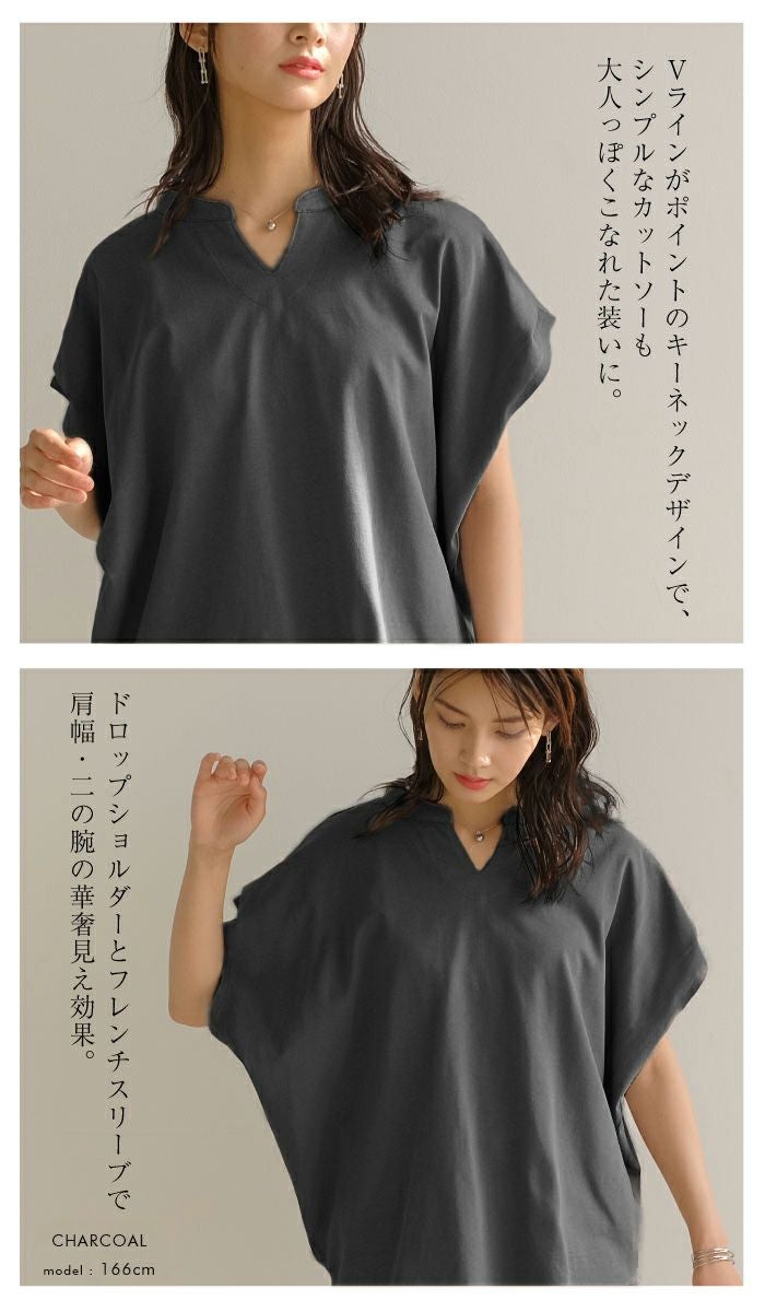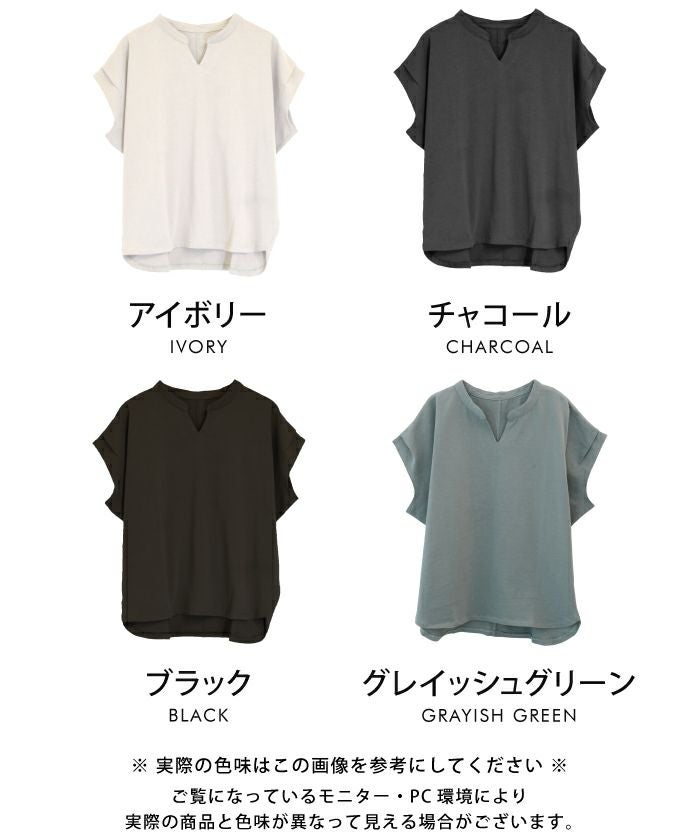 送料無料 キーネックカットソー レディース 春 夏 半袖 フレンチスリーブ ≪ゆうメール便配送20・代引不可≫ | アクアガレージ aquagarage