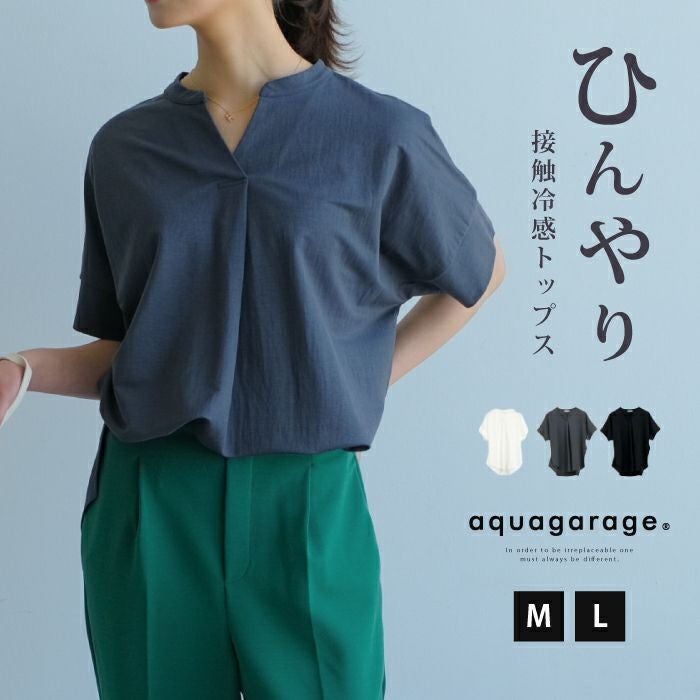 送料無料 接触冷感キーネックカットソー レディース 春 夏 M L 半袖 五分袖 ≪ゆうメール便配送20・代引不可≫ | アクアガレージ aquagarage