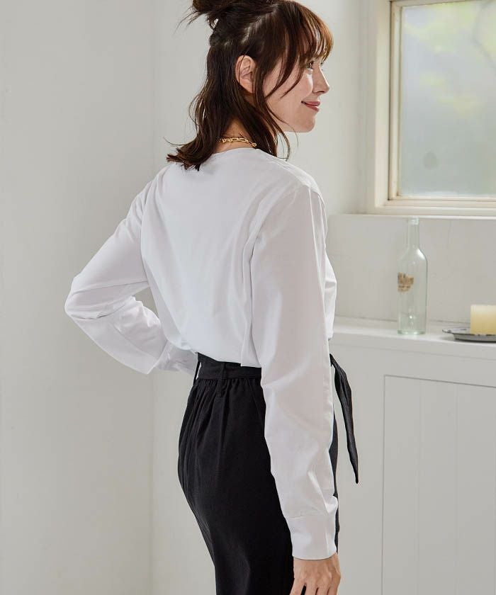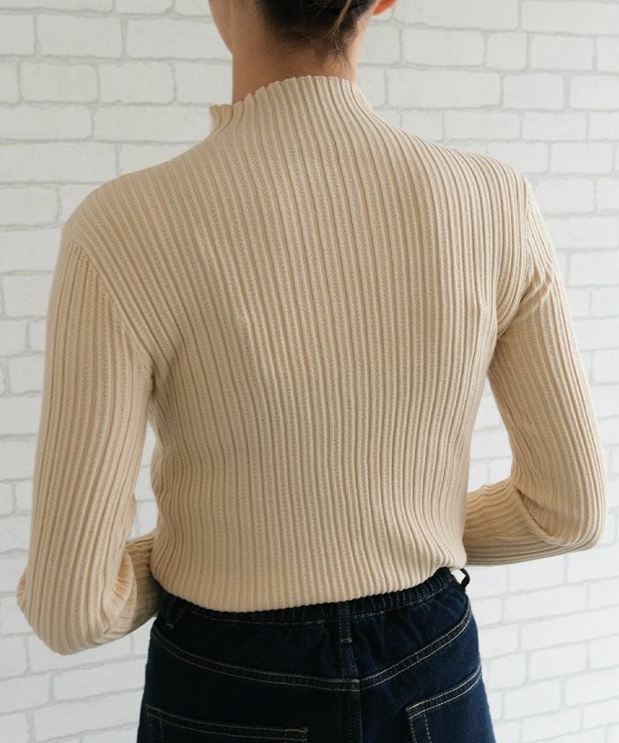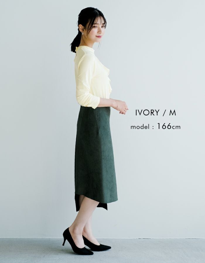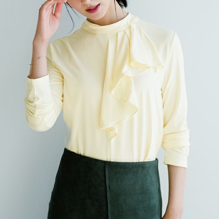 送料無料 フライスリブ袖口フリルヘンリーネックトップス 春 秋 冬 M レディース ≪ゆうメール便配送20・代引不可≫ | | アクアガレージ aquagarage