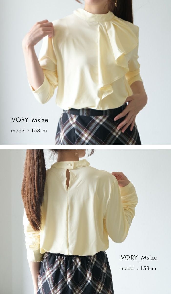 送料無料 フロントフリルカットソー レディース M L 春 秋 長袖 ≪ゆうメール便配送20・代引不可≫ | アクアガレージ aquagarage