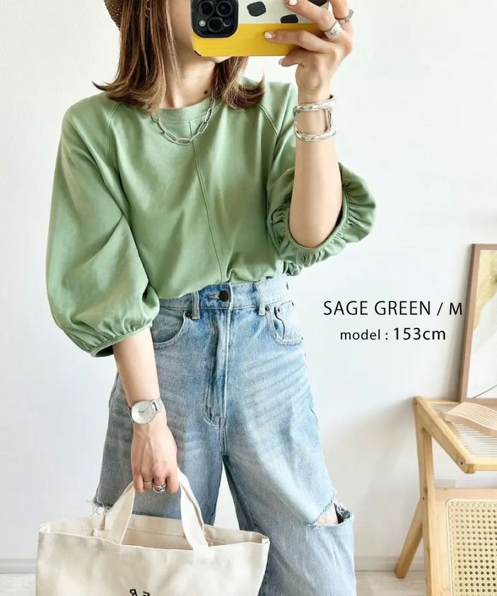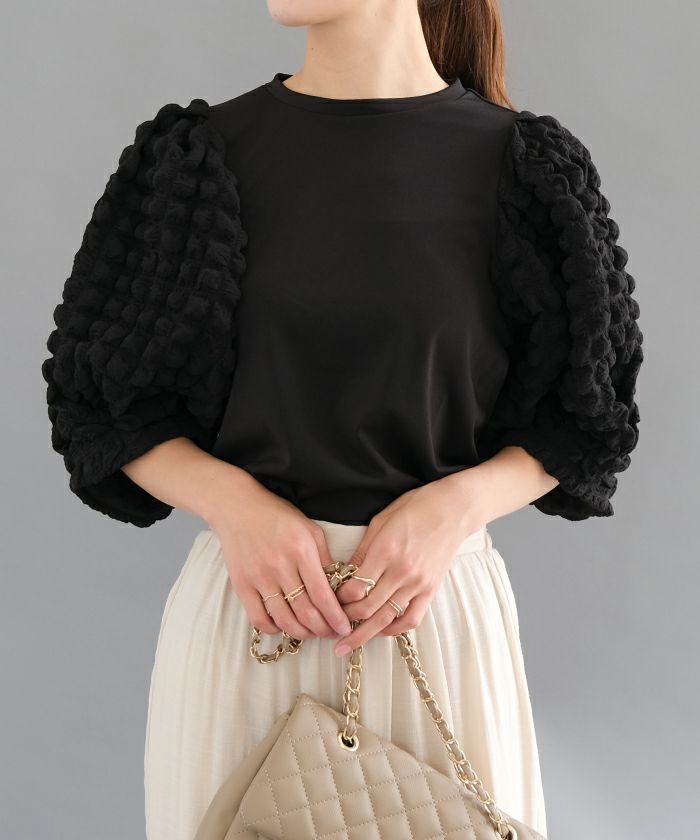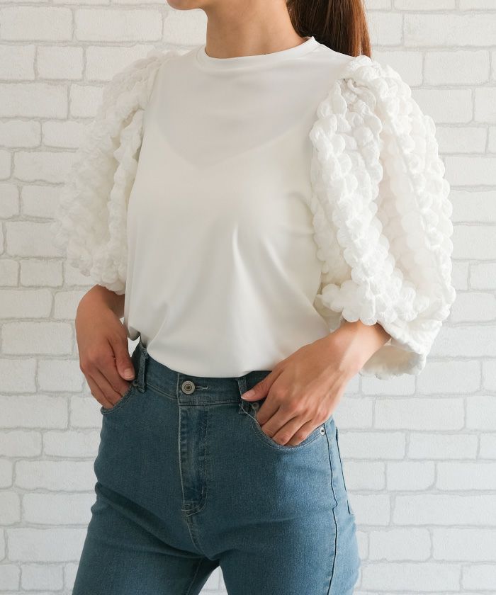 【最終値下げ価格】ポップコーンスリーブトップス レディース 春 秋 5分袖 五分袖 | アクアガレージ aquagarage