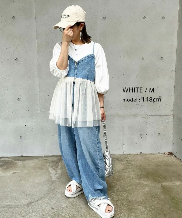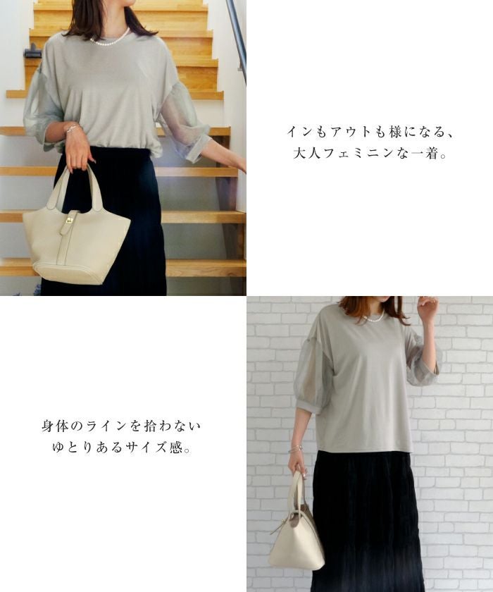 送料無料 袖チュールカットソー レディース 春 夏 M ≪ゆうメール便配送20・代引不可≫ | アクアガレージ aquagarage