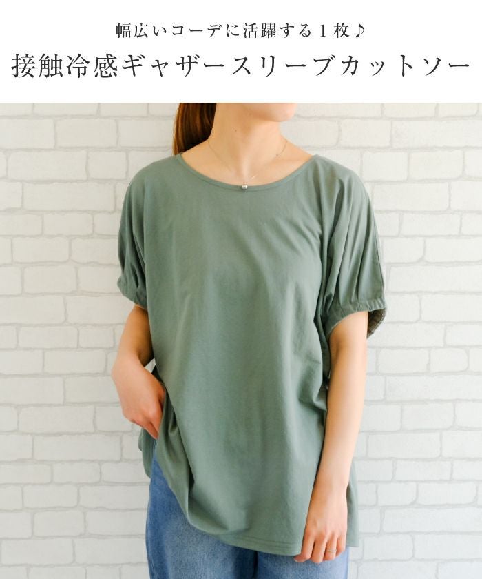 送料無料 接触冷感ギャザースリーブカットソー M L レディース ≪ゆうメール便配送30・代引不可≫ | | アクアガレージ aquagarage
