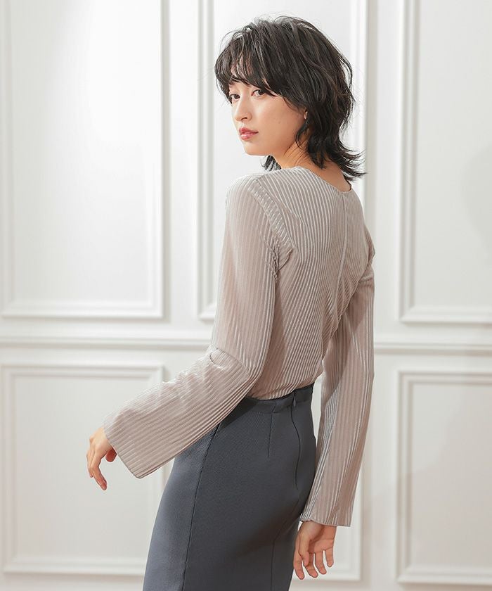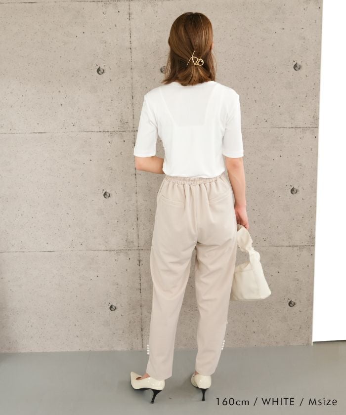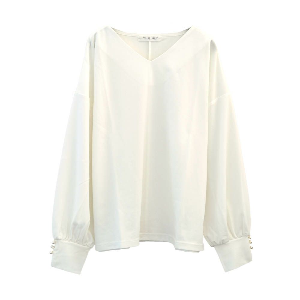送料無料 梨地Vネック袖口パールカットソー レディース 春 秋 冬 M ≪ゆうメール便配送30・代引不可≫| アクアガレージ aquagarage