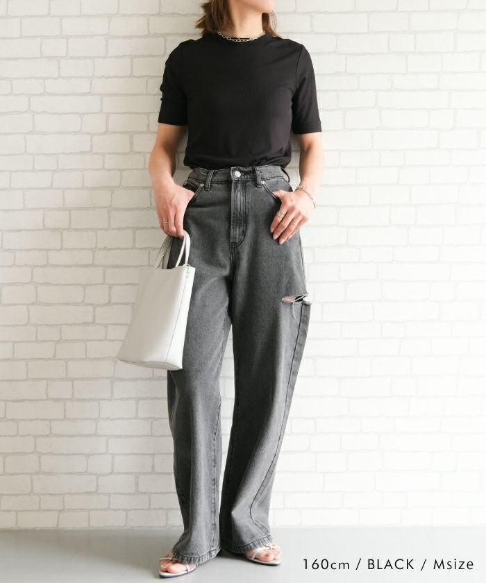 送料無料 リブクルーネックTシャツ 春 夏 秋 M L≪ゆうメール便配送20・代引不可≫ | アクアガレージ aquagarage