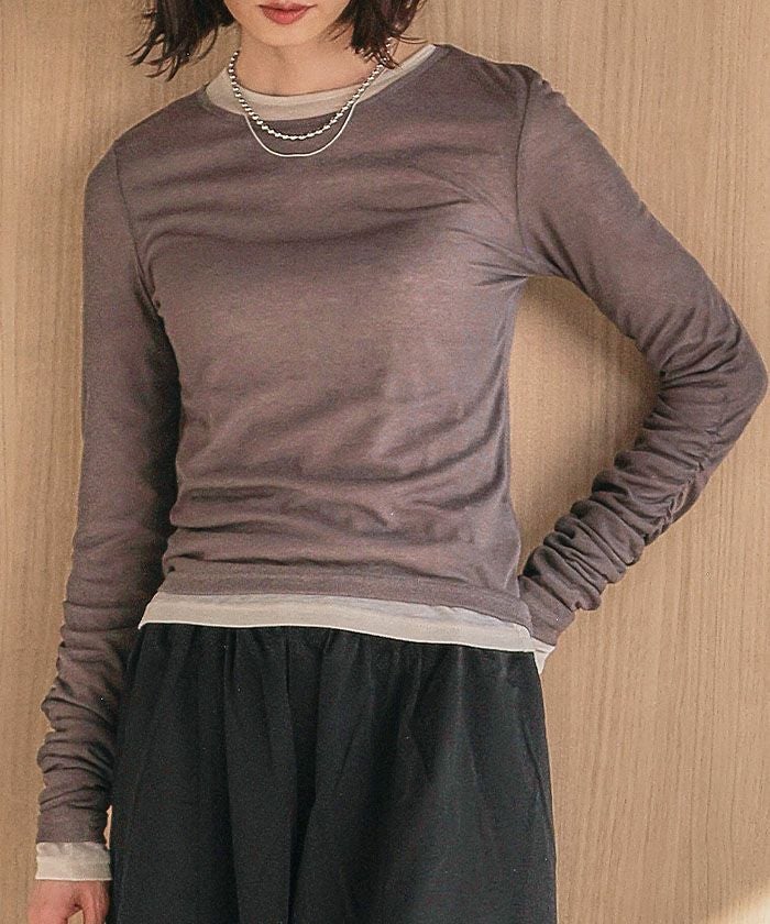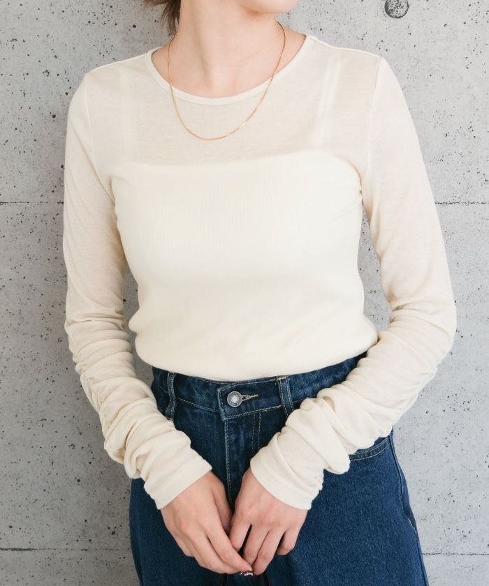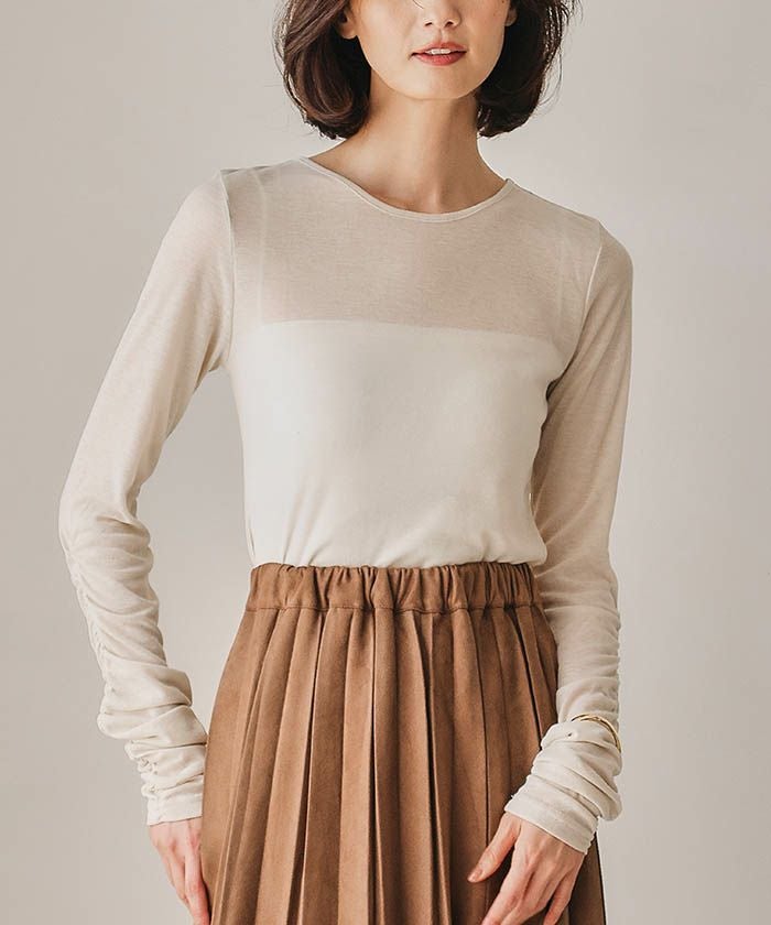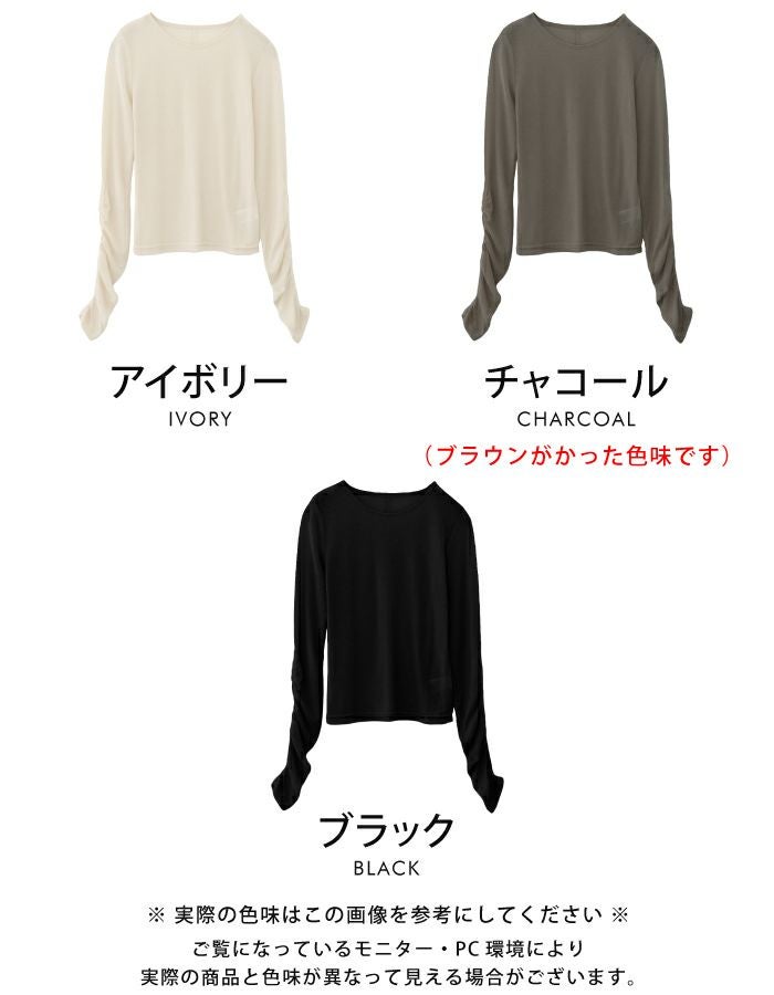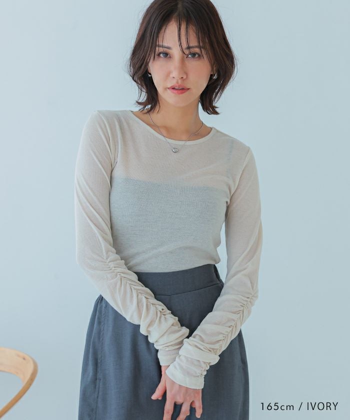 送料無料 袖シャーリングフラッフィーシアートップス 春 秋 冬 M レディース ≪ゆうメール便配送10・代引不可≫ | | アクアガレージ aquagarage