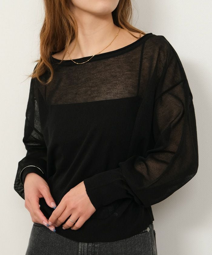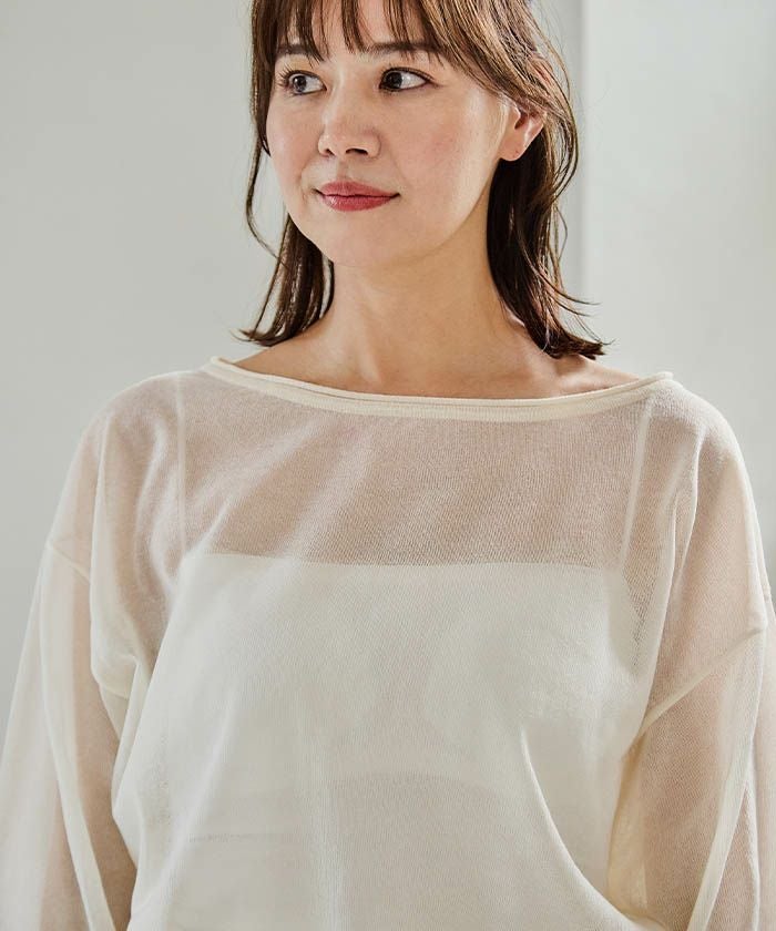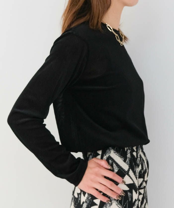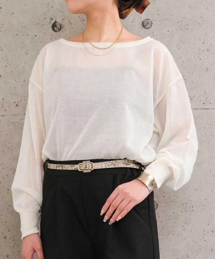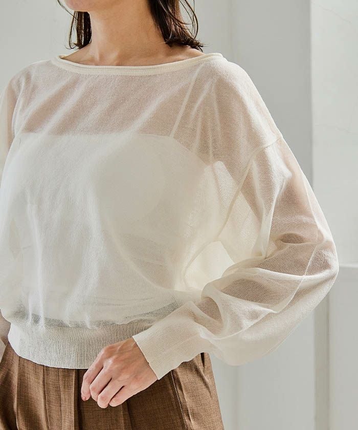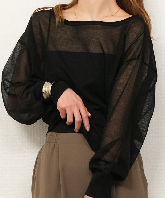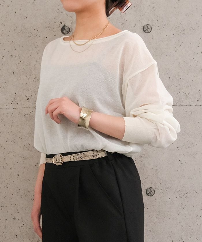 送料無料 袖口シアーニットトップス 春 秋 冬 M レディース ≪ゆうメール便配送10・代引不可≫ | | アクアガレージ aquagarage