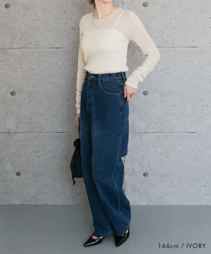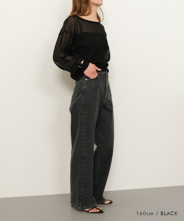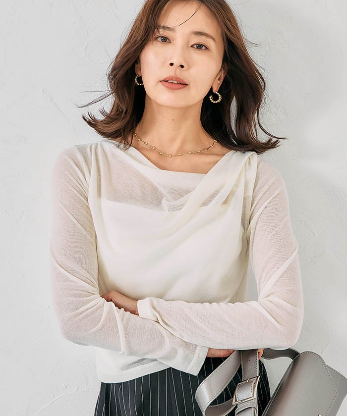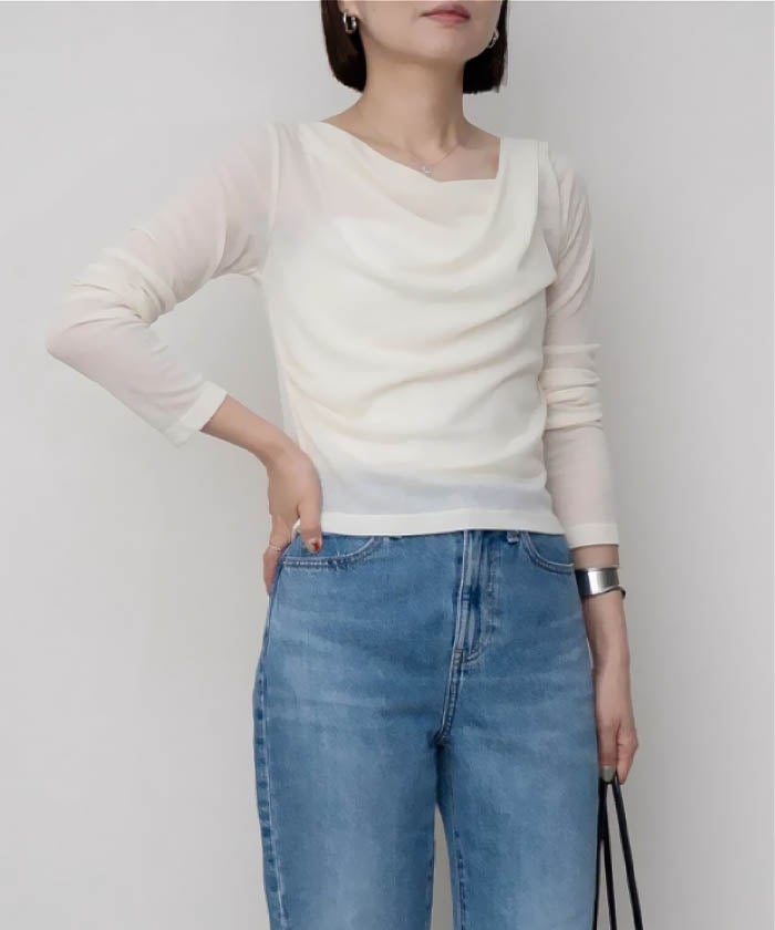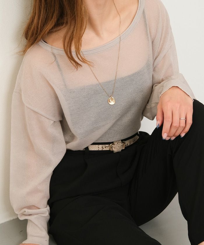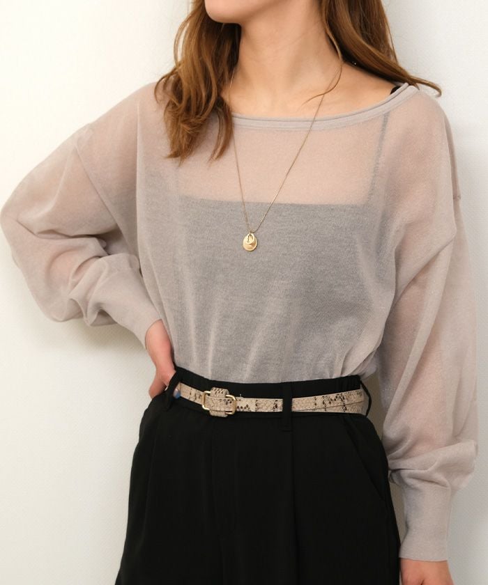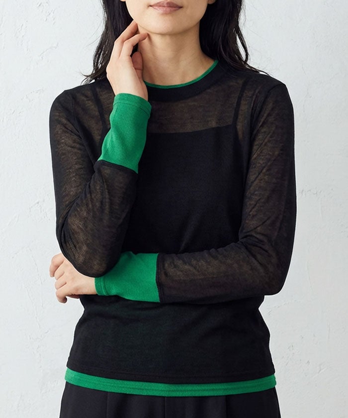 送料無料 袖口シアーニットトップス 春 秋 冬 M レディース ≪ゆうメール便配送10・代引不可≫ | | アクアガレージ aquagarage