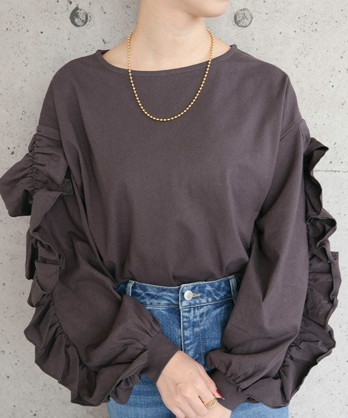 ボリュームフリルスリーブ長袖カットソー 春 秋 冬 | アクアガレージ aquagarage