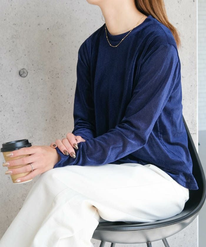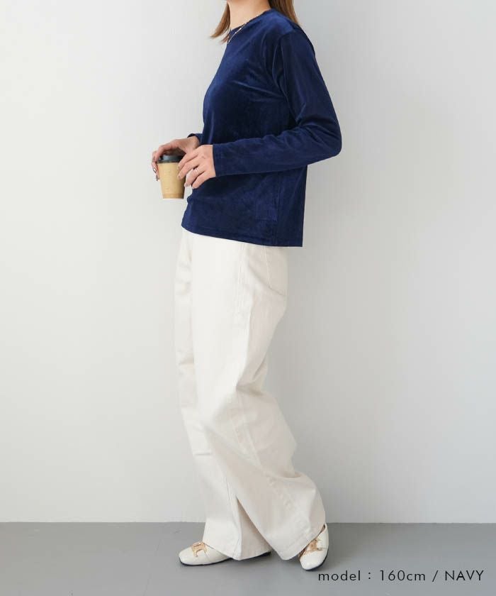 送料無料 シアーベロアクルーネックトップス 春 秋 冬 M レディース ≪ゆうメール便配送20・代引不可≫ | | アクアガレージ aquagarage