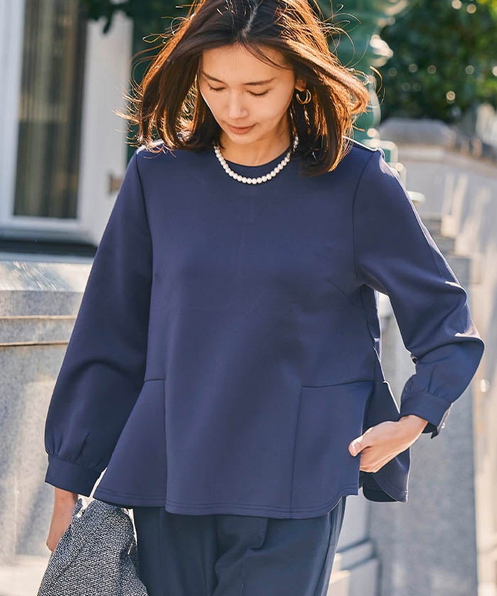 送料無料 袖パール付きペプラムトップス 長袖 レディース ≪ゆうメール便配送30・代引不可≫ | アクアガレージ aquagarage