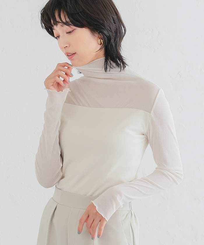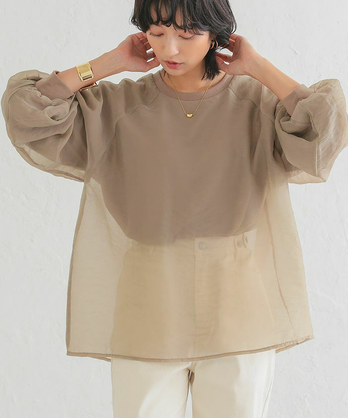 送料無料 オーガンジーシアー長袖トップス レディース 春 秋 M ≪ゆうメール便配送30・代引不可≫|アクアガレージ aquagarage